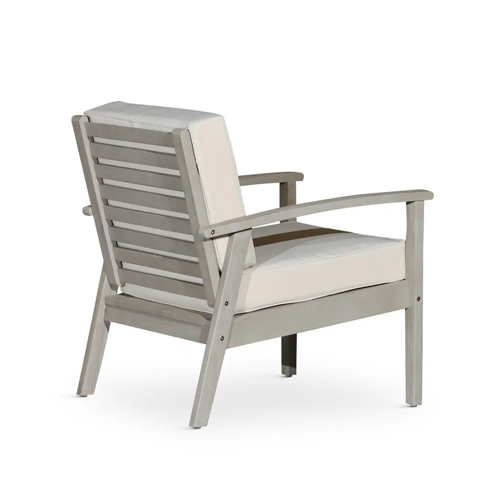 This deep seat eucalyptus chair is a true gem for those seeking ultimate relaxation. It offers a spacious and inviting seating experience. The slightly slanted back provides excellent support, allowing you to unwind and enjoy your leisure time. The chair is not only cozy but also designed to enhance the outdoor atmosphere. It's a perfect addition to any outdoor space, whether it's a patio, garden, or balcony. With its durability and sustainable materials, it ensures long-lasting enjoyment and contributes to a greener environment.