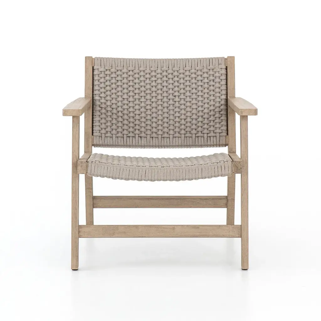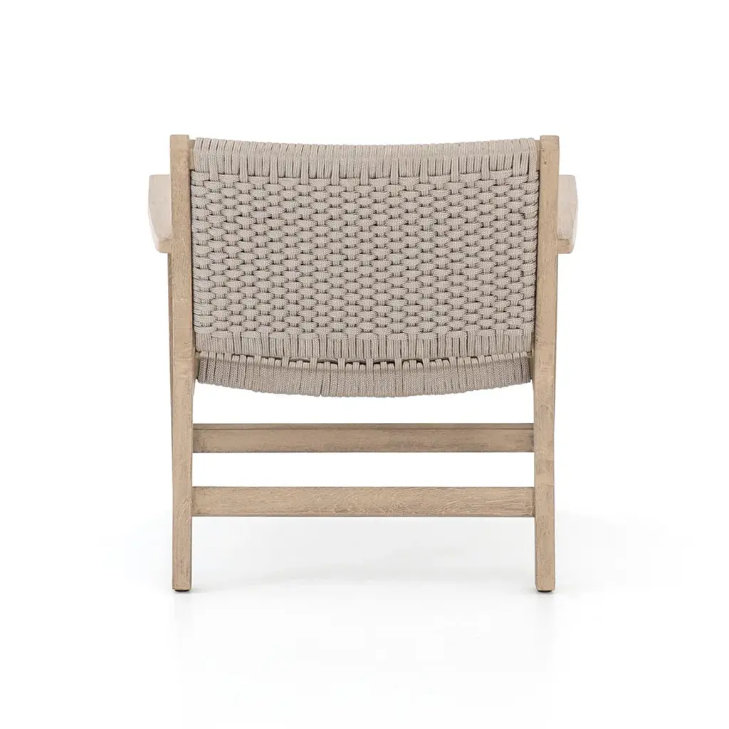 A textural take on the outdoor ottoman, weathered grey teak welcomes thick, handwoven rope in an inviting grey. Perfect accompaniment to matching seating. Safe for outdoor spaces. Cover or store indoors during inclement weather and when not in use. Ships In 10-14 Business Days Handwoven rope seat and back Weathered grey teak frame This image is for illustrative purposes only. The colors shown are accurate within the constraints of lighting, photography, and the color accuracy of your screen.