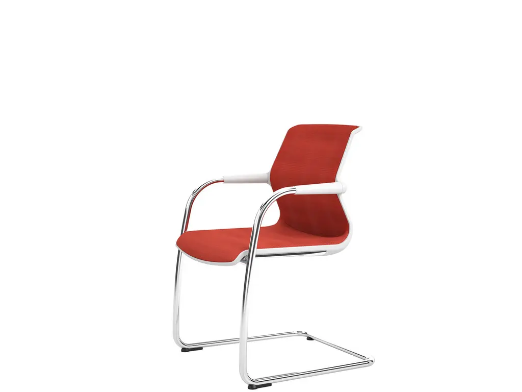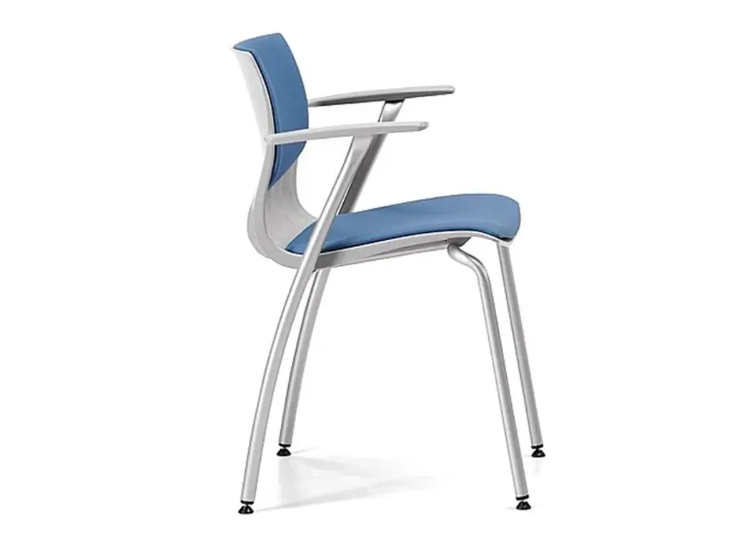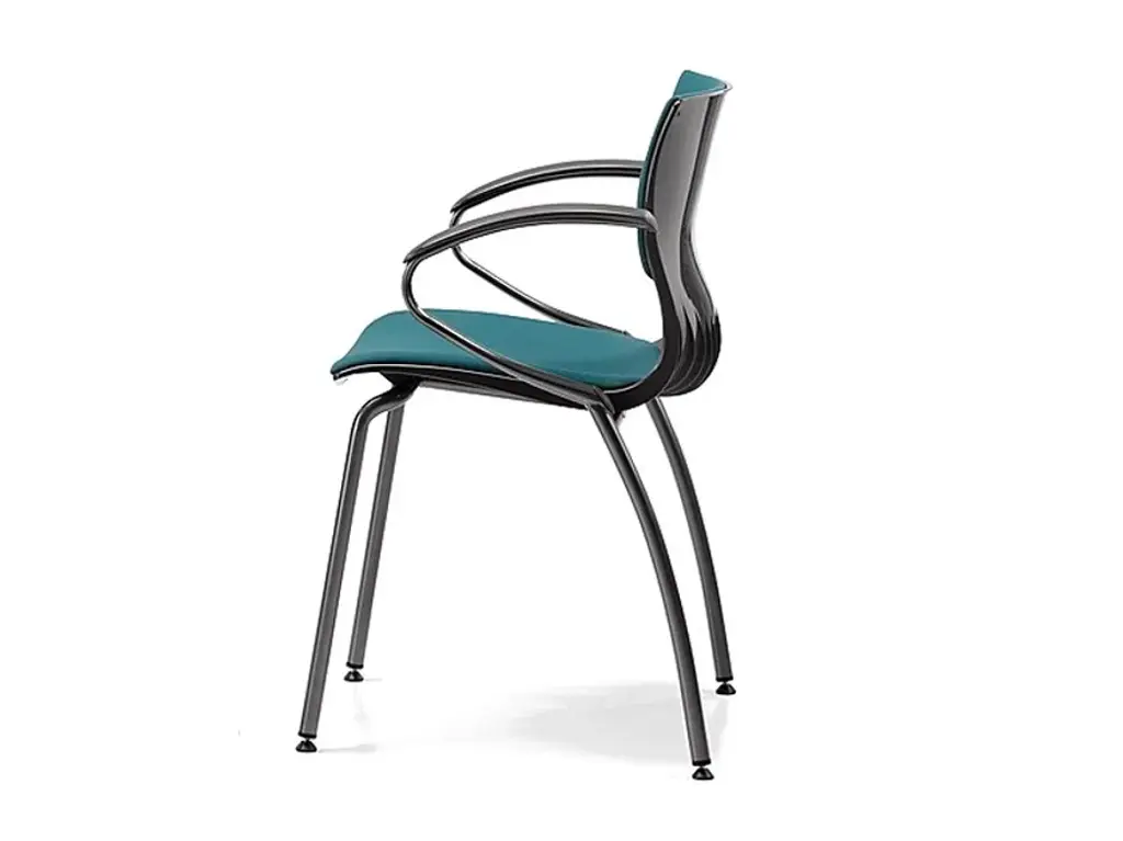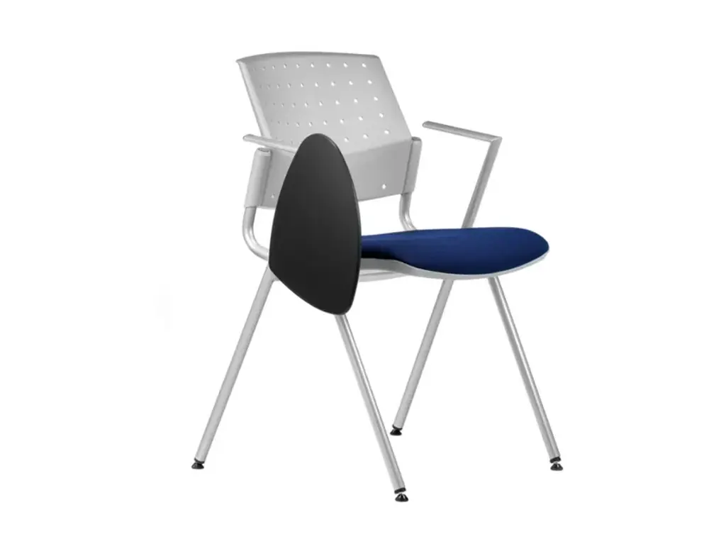 Delfi net 073 - Upholstered fabric reception chair.Nesting - Stacking chairs with flip-up seat for frontal nesting.Seat always padded and upholstered in fabric or leather.UnderSeat and back in copolymer available in various colors.3 backs available: round for Delfi, square for DelfiBrio, mesh for DelfiNet.4 legs metal base with or without arms and adjustable glides.Available version with 4 castors and/or 2 and 2.Available version with anti-panic writing tablet.Ideal for: conference rooms, clinics, hospitals, schools, front desk.Optional: Front panel padded and upholstered seat or seat and back, connecting ganging, left tablet, big size tablet for PC, transport dolly, floor metal bracket alignment.
