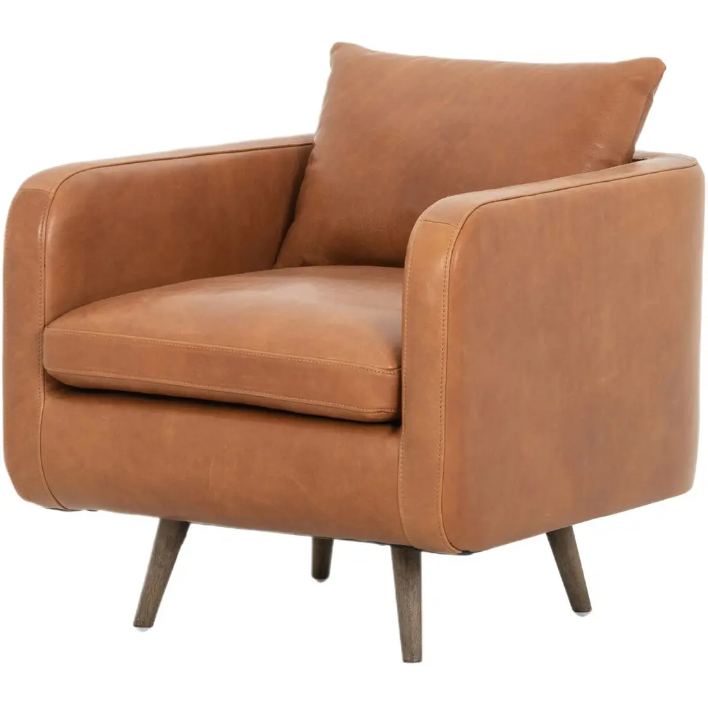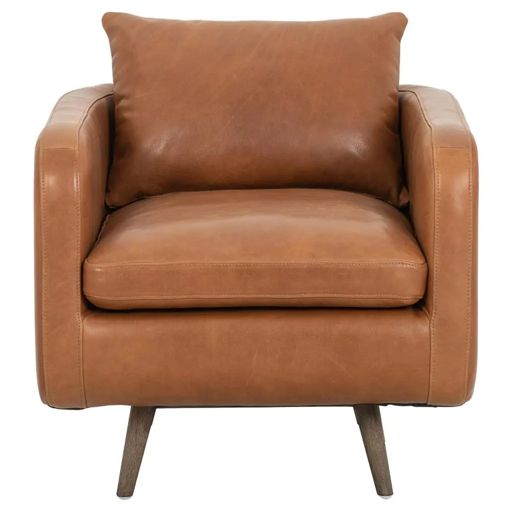 Chic and effortless, the Diana Chair is available in a perfectly patinated top-grain leather. A beautiful classic wood frame completes this piece, giving it a stunning mid-century look.
