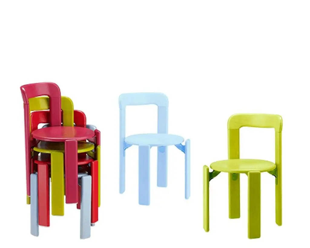 This is the children version of the famous Rey chair.Referred to as "the most successful piece of Swiss Furniture of all time" by the Swiss Museum of Design in Zurich, the Rey chair is a Swiss design icon since 1971.Designed by Bruno Rey, the Rey chair is famed internationally for its elegance and style. Like the original, the Junior edition is constructed with Dietiker’s patented screw less wood-to-metal connection.The solid execution and rounded edges are perfectly suited for children.The chair is made with care from solid beechwood, with die cast aluminum consoles and glides.- rounded edges for children safety- timeless design - unique screwless patented wood-metal connection- Rey Junior chair load test for 175lbs as per ANSI/BIFMA- forest sustainability FSC beech wood certification- contract grade - stacks up to 4Available in the following colors: Arik levy fresh light 2 blue, Arik levy soft acid 3 green, maple beech, candy.