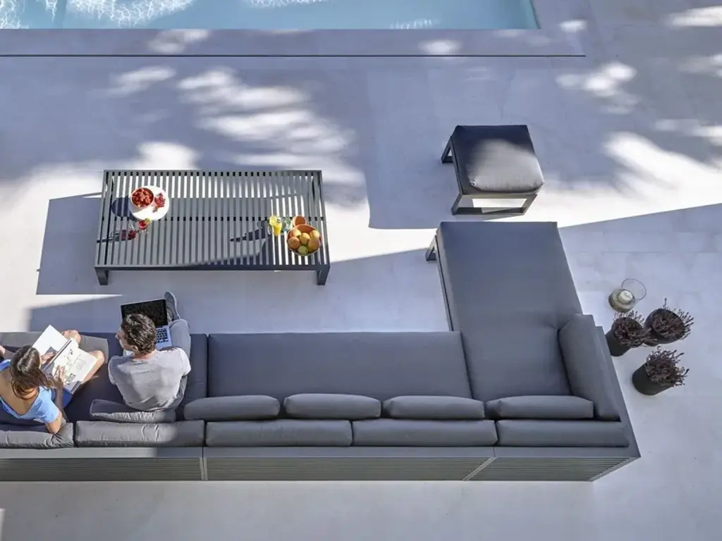 “I have always felt attracted by the patterns of light and shadows filtering through Mediterranean shutters, as well as by the work of certain architects from the Far East who work with wooden slats and bamboo cane. DNA is an outdoor furniture collection that reinterprets the essence of these horizontal shapes.”José A. Gandía-BlascoDNA is a collection of outdoor furniture inspired by the subtle play of the modulations of light and shadows filtering through Mediterranean shutters and it praises the shadows of Japanese aesthetics in traditional and contemporary architecture – the positive and the negative dispossessing any superfluous adornment.Made of anodized or thermo-lacquered aluminium profiles. Polyurethane foam rubber covered with water-repellent fabric. Removable fabric cover.Collections colour sample: anodized, white, agate grey, cement grey, sand, bronze, wine red, blue grey, grey blue, signal grey, anthracite and black.