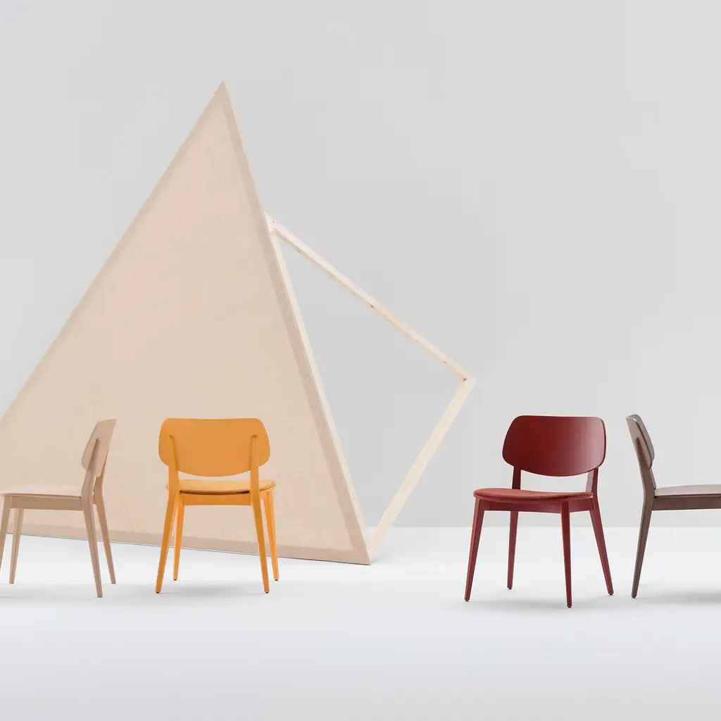 This is the story of a little girl’s doll. A collection of dollies, as the name suggests. A complete range of pieces with alluringly sweet lines, solid beech or metal frames, upholstered, stained or lacquered seats and backs. The Doll Chair’s sleek lines become even more embracing, being ideal for those moments of relaxation.