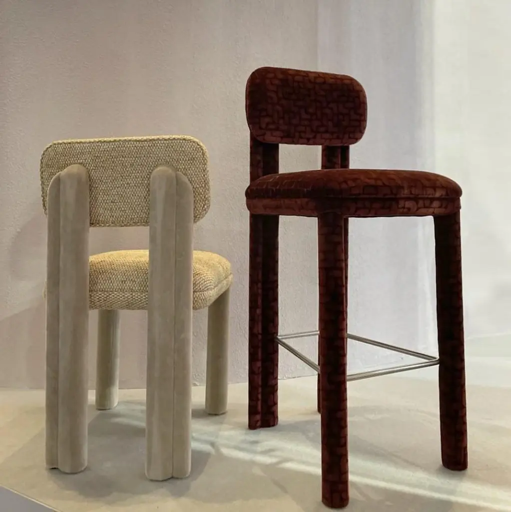 DOOQ New Modern Bar Chair Camelia in Beige and Gray Fabric Fully UpholsteredProduct sizes may vary up to 2cm!Introducing Camelia, a chair that gracefully embodies the essence of the Romantic period, channeling its ideals of passion and elegance. With its sensuous curves and intricate detailing, Aimee invites you to indulge in a sensory experience, capturing the romantic spirit in every sit.If you are planning on ordering an upholstery item with COM upholstery, please follow these instructions: - Let us know that you are shipping fabric to us prior to shipping, as we will need you to fill a form;- All fabrics must be shipped to the company DOOQ, LDA, and no other name;- Send us the fabric invoice so we can present it to portuguese customs so the fabric can be released;- Our company must appear on the fabric invoice as "SHIP TO" only, not as "BILL TO" or "SOLD TO"- Our company has the right to refuse acceptance of fabric/leather if the shipment of such material ignores the requirements written above;For sales with delivery address within European territories, VAT will be charged additionally to the stated price.