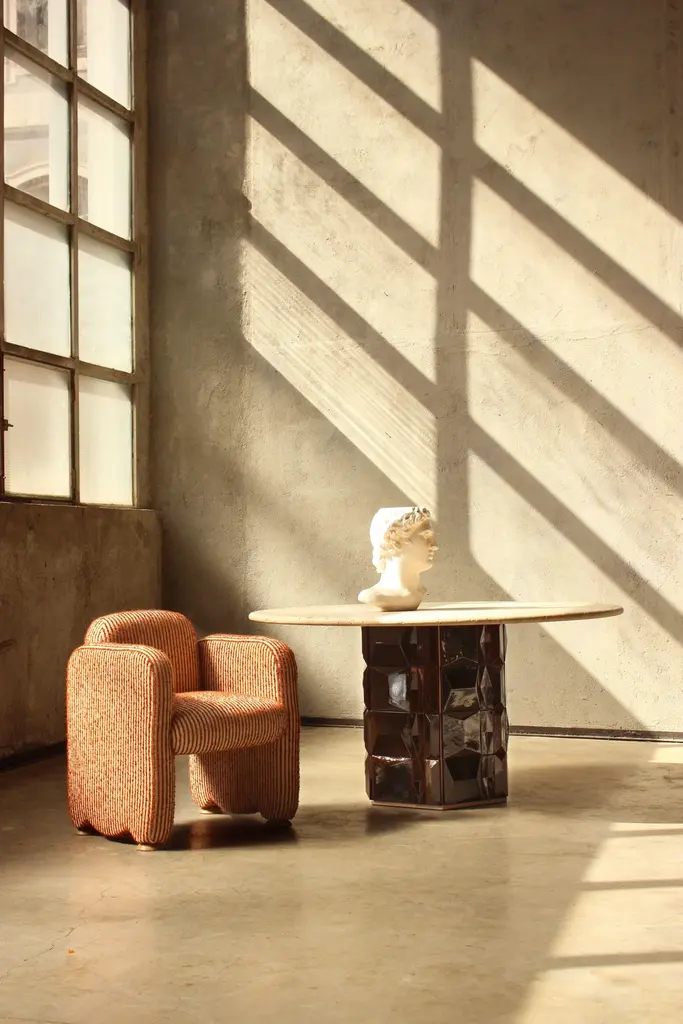 DOOQ! NEW! Organic Modernist Cindy chair with armsIntroducing Cindy, our latest addition embodying the essence of the new wave movement. With its sleek design and fluid lines, Cindy stands as a testament to artistic innovation. Its unique, fully upholstered form beckons admiration, offering not just a piece of furniture but a statement piece. Crafted to evoke a sense of fluidity and harmony, Cindy represents a fusion of artistry and functionality.Made to Order. For sales with delivery address within European territories, VAT will be charged additionally to the stated price.