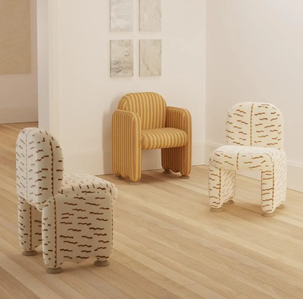 DOOQ! NEW! Organic Modernist Cindy chair without armsIntroducing Cindy, our latest addition embodying the essence of the new wave movement. With its sleek design and fluid lines, Cindy stands as a testament to artistic innovation. Its unique, fully upholstered form beckons admiration, offering not just a piece of furniture but a statement piece. Crafted to evoke a sense of fluidity and harmony, Cindy represents a fusion of artistry and functionality.Made to Order. For sales with delivery address within European territories, VAT will be charged additionally to the stated price