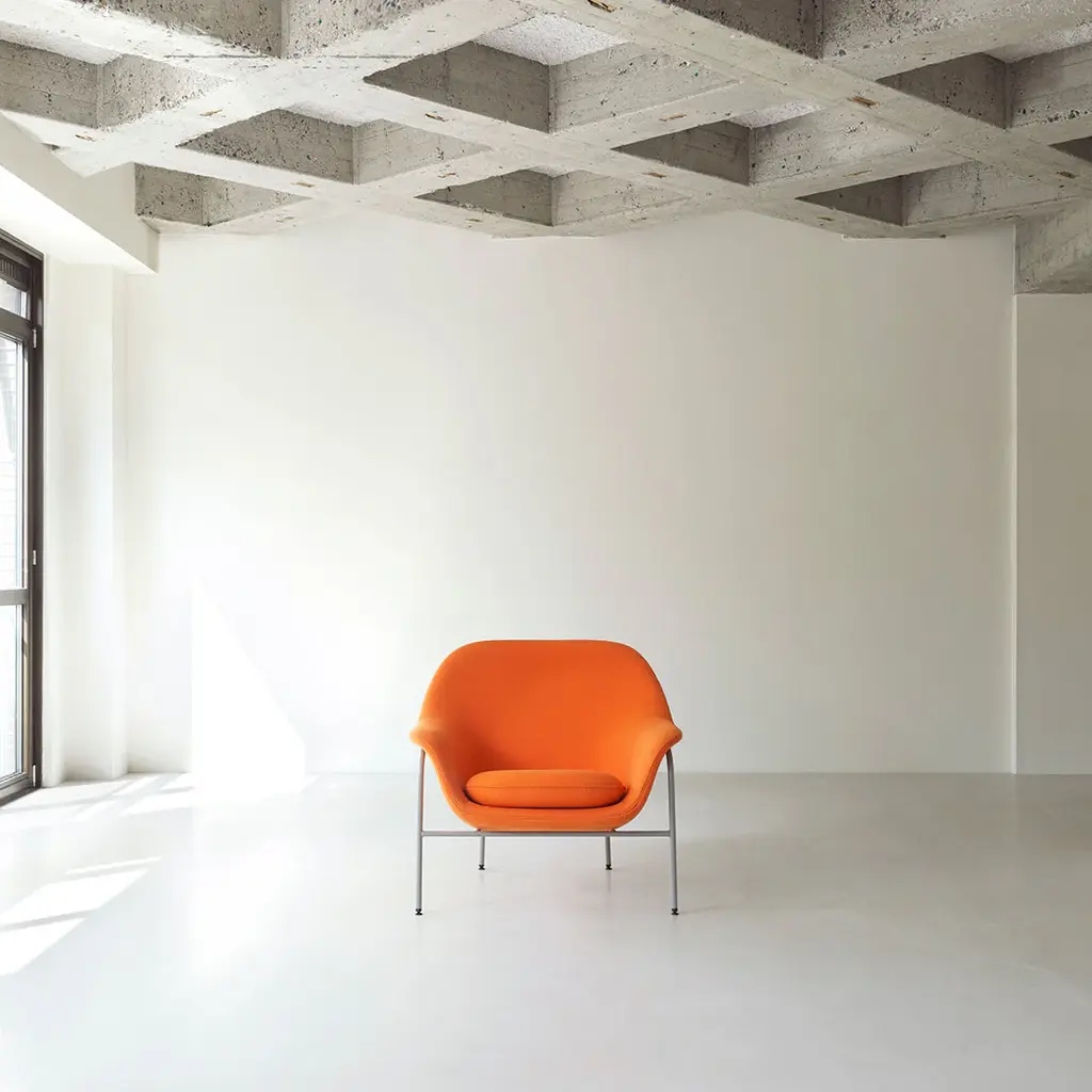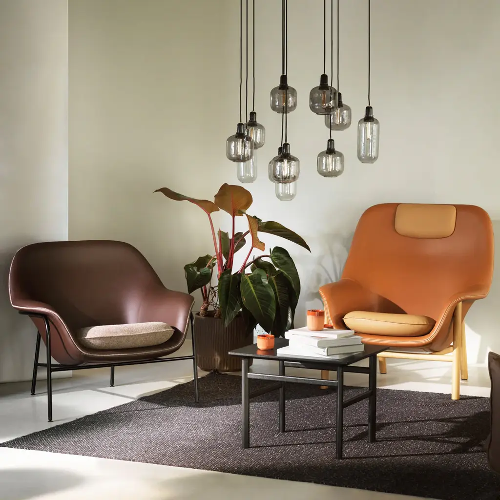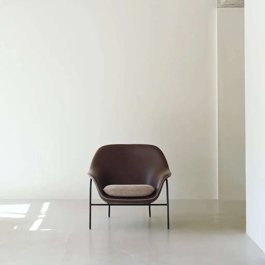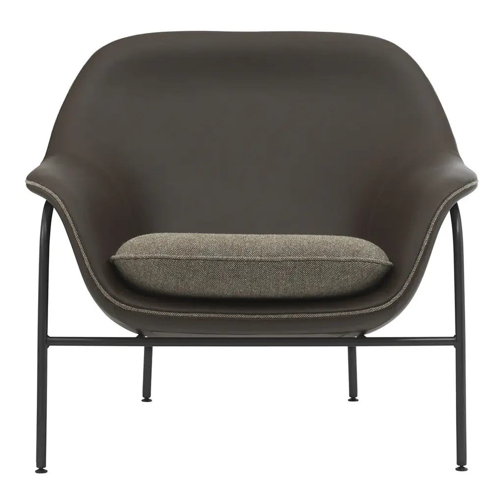 Drape is a lounge chair collection characterized by its sharp precision and soft curves. The upholstery is “draped" around the chair giving an elegant and organic outline, inviting you to take a well-deserved rest.Drape is available in our wide selection of upholstery and can be altered with two different base variations. The steel base has a light and slim silhouette giving a sleeker and more modern look, while the solid oak legs add a warm and artisanal touch to the design.Drape also offers additional customization than any other product in the extensive Normann Copenhagen collection. With piping following the desired upholstery chosen for the seat, Drape can be modified down to the smallest detail. Make a bold statement and choose contrasting piping and seat cover to add a personal touch or adorn the lounge chair in the same upholstery to create a coherent visual expression.