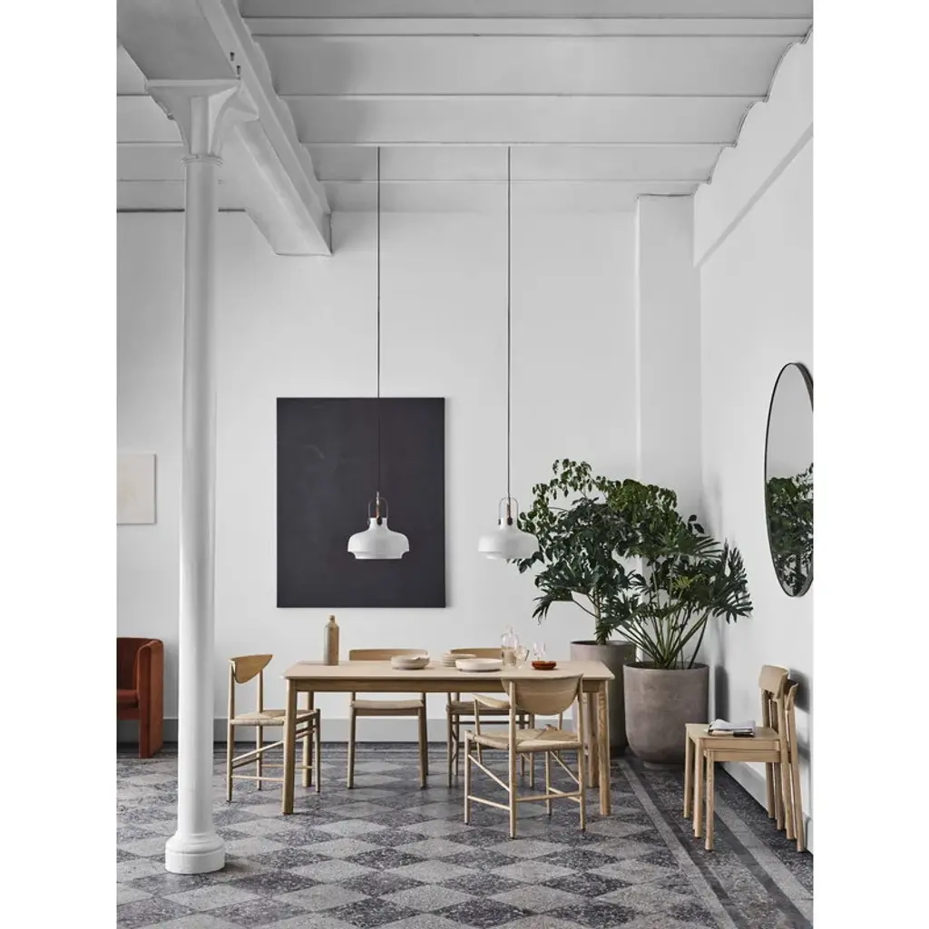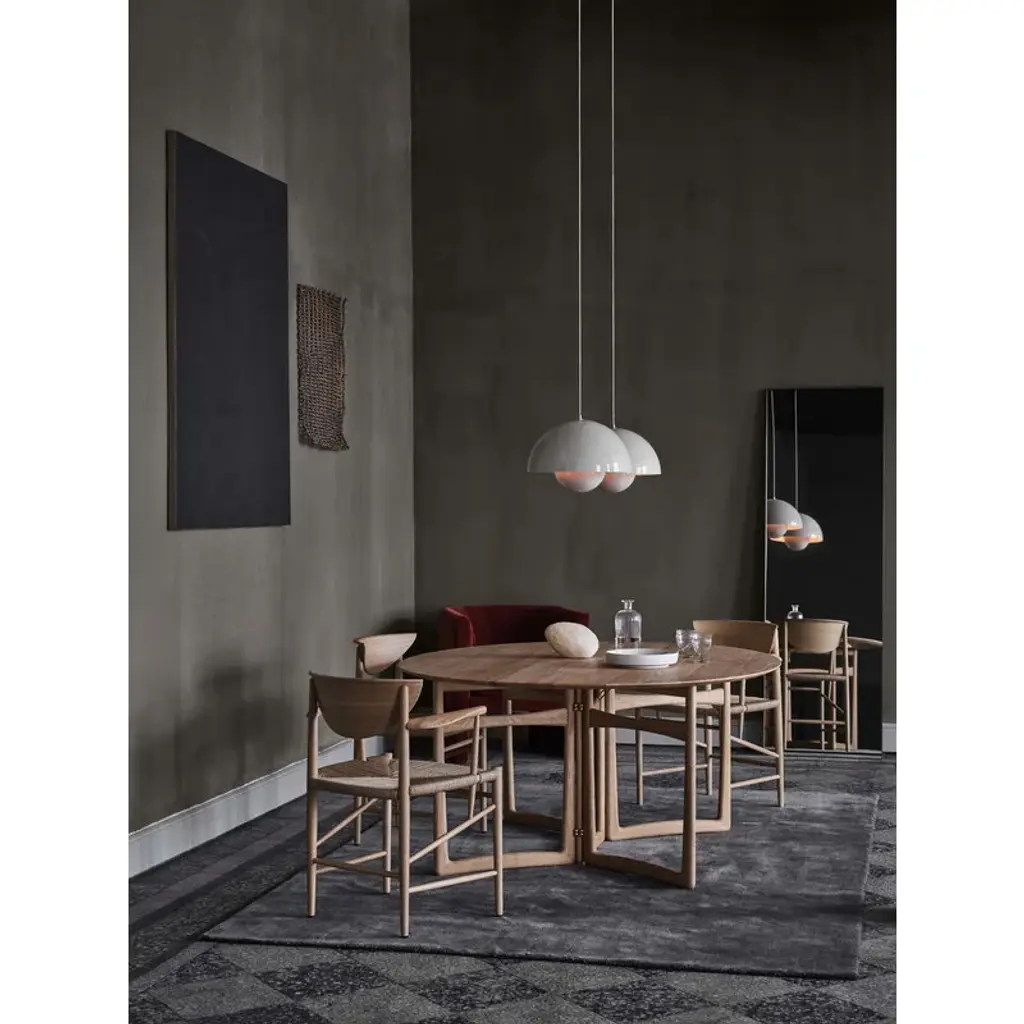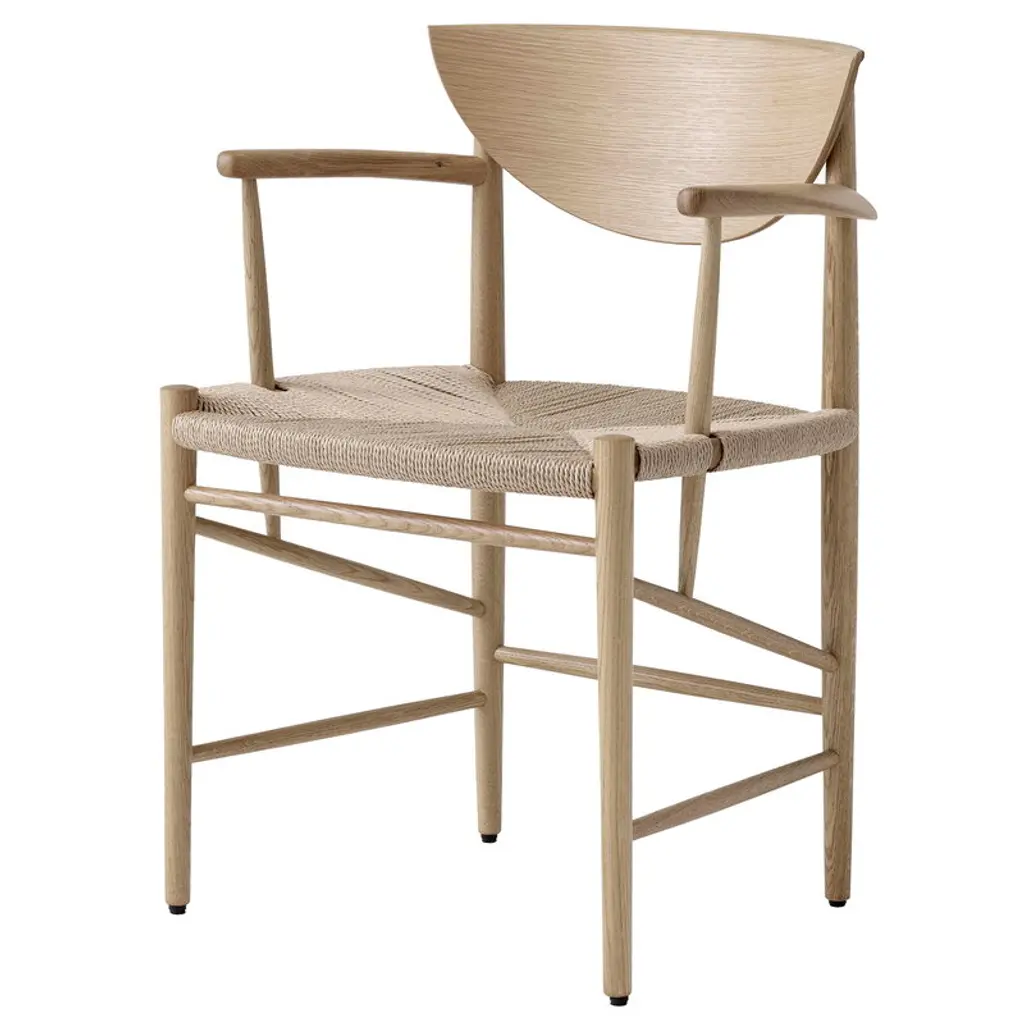 &Tradition’s Drawn chair is a beautiful piece of Danish mid-century design. Crafted from solid wood with a charming hand-woven paper cord seat, the chair is characterized by its crescent-shaped backrest and diagonally placed braces. Natural materials and traditional techniques lend the chair an honest, unassuming air that makes Drawn easily fit into both modern and more classic interiors. The Drawn chair was designed by Hvidt & Mølgaard in 1956.