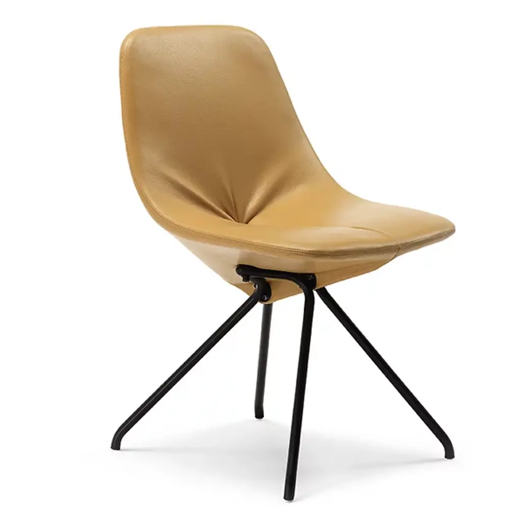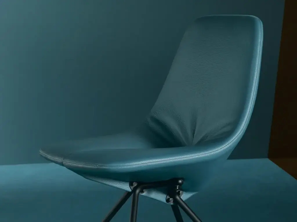 Designed in late 1953, the DU 30 armchair is certainly Gastone Rinaldi’s most famous piece. In fact, it was awarded the Compasso d’Oro, then known as the Compasso d’Oro-Rinascente, in 1954, the first year the prize was presented. The jury included the likes of Gio Ponti, Marco Zanuso and Alberto Rosselli. The DU 30 armchair was immediately patented and appeared on the front cover of the first edition of Stile Industria magazine in June 1954. The unitary nature of the seat and backrest results in a central cutting and stitching effect that brings to mind the contemporary works of Lucio Fontana.The DU 30 armchair has a shaped single shell in steel mesh with moulded polyurethane foam padding. Legs in bent and welded iron tubing with a textured, wrinkled black finish (BLACK RAL 9005). Equipped with a lower ‘backbone’, the shell is directly screwed to each pair of legs. The padding is in moulded polyurethane foam and the upholstery is in Pelle Frau® leather, distinctive for its central stitching which begins at the bottom of the backrest, where gentle folds are formed, and continues right along the seat. The front is embellished with hand stitching.