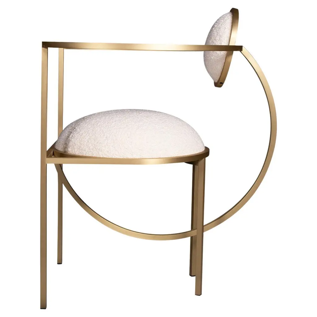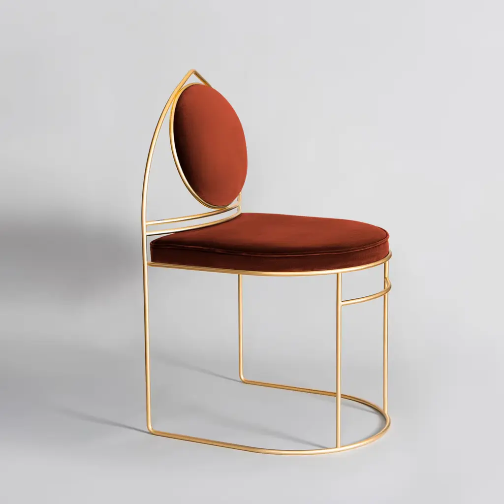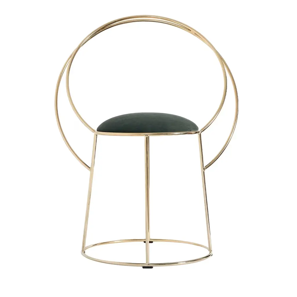 In the Ducal Collection, Enrico Girotti pays homage to the city of Venice by reinterpreting elements of Venetian Gothic. A palingenetic journey that fuses design and craftsmanship through metal and textiles. Ducale-GT features a Gothic arched backrest with a circular backrest supported by double curved elements. The chair is made of solid shaped steel, front closed, with a Matte Gold finish, embellished with velvet upholstery. Please, contact the Concierge for customization options.