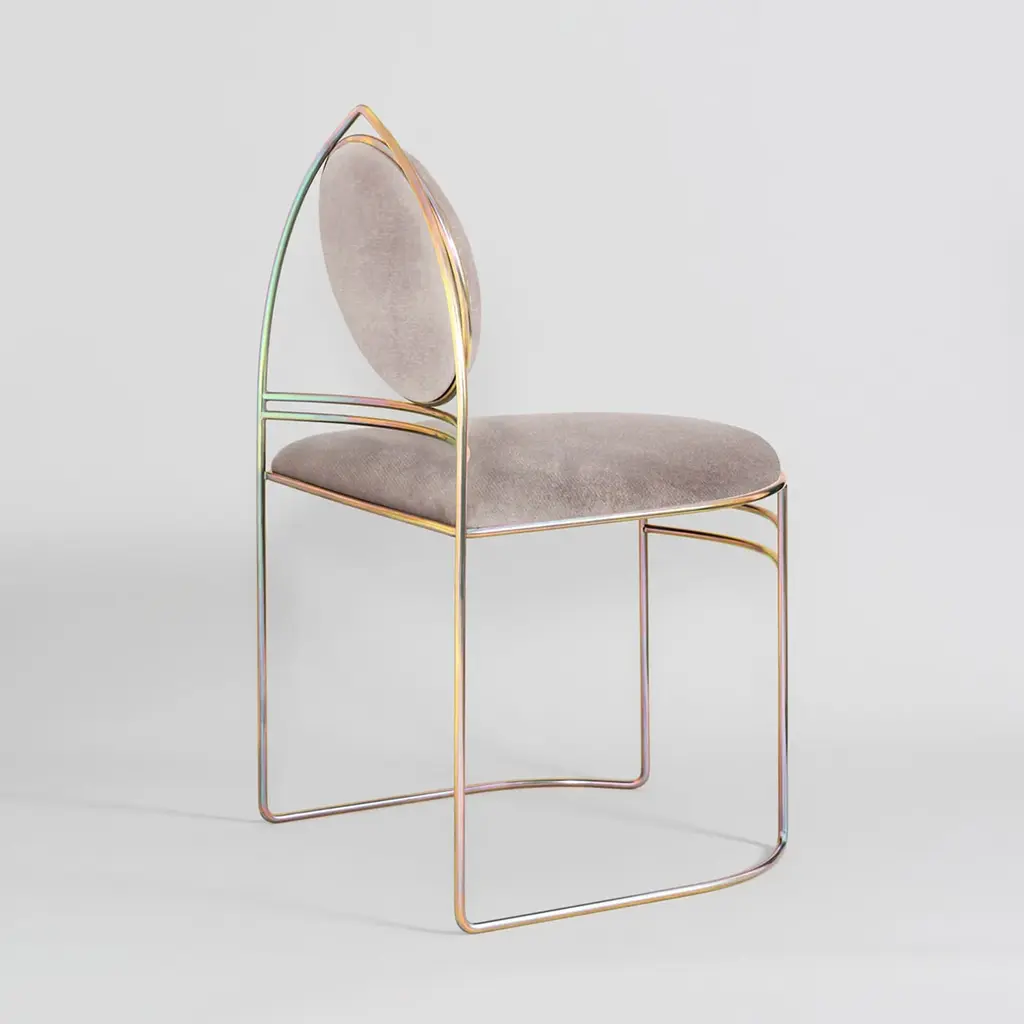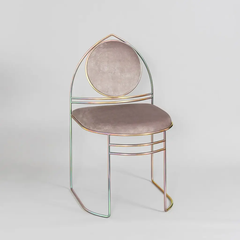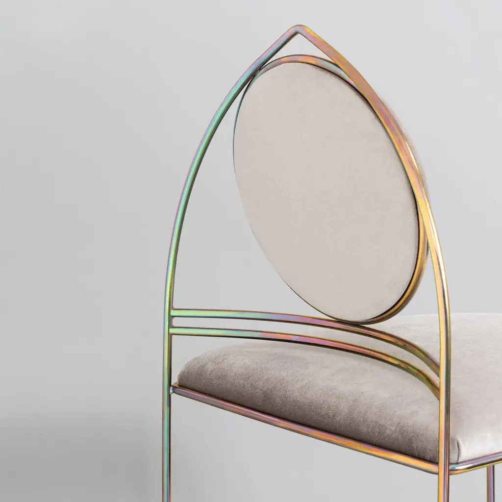 In the Ducal Collection, Enrico Girotti pays homage to the city of Venice by reinterpreting elements of Venetian Gothic. A palingenetic journey that fuses design and craftsmanship through metal and textiles. Ducale-ST White features a Gothic arched back with a circular backrest supported by double curved elements. The chair is made of solid-shaped steel with an open front. Customizable, it comes with a certificate of authenticity. Please, contact the Concierge for more information.