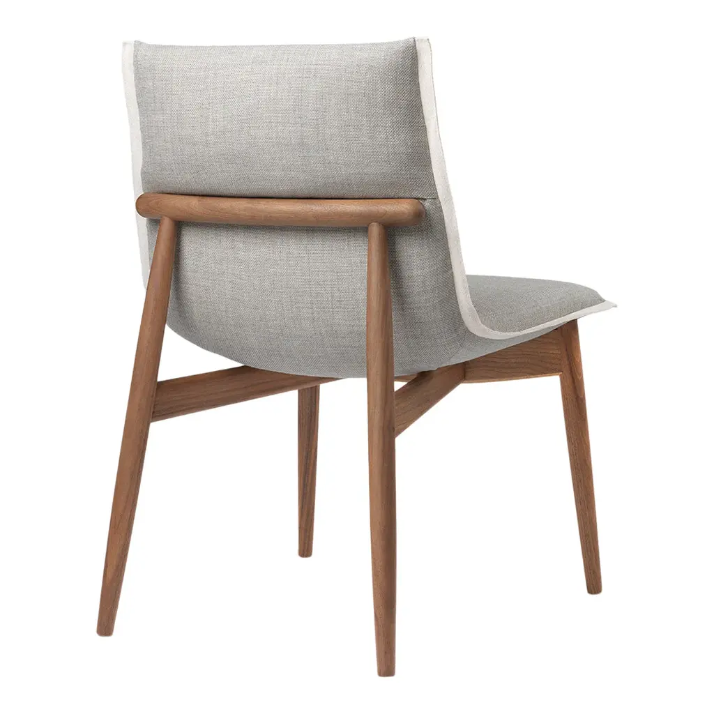 The Embrace Chair is a 2019 addition to the Embrace Series by Austrian design trio EOOS. Visually light in its expression, the chair has no armrests and will take up less space, fitting with any table. The design allows for great freedom of movement, a quality that enables users to communicate and interact freely. The upholstery is folded in two dimensions and the relaxed air of the upholstery contrasts the perfectly shaped wooden frame. It is a testimony to the unity between the craftsmanship and heritage of Carl Hansen & Son and the innovative design approach of EOOS.