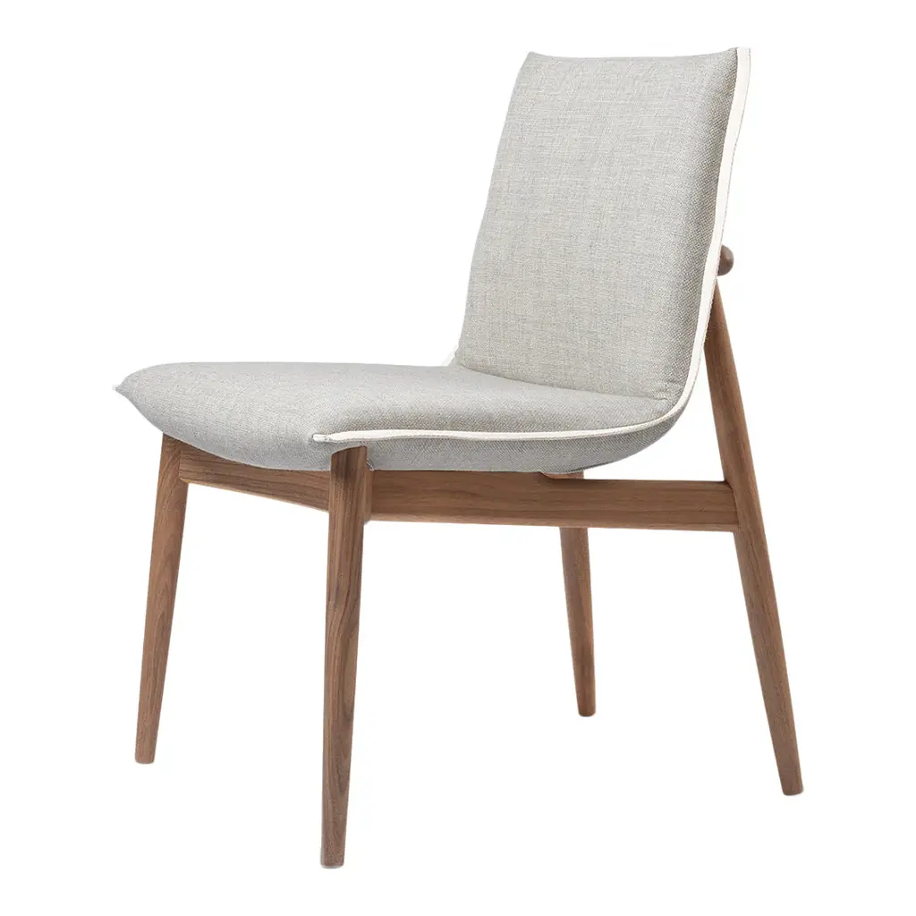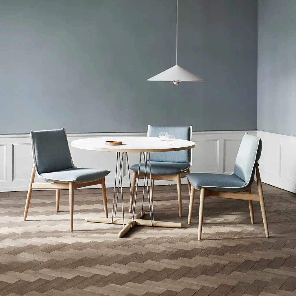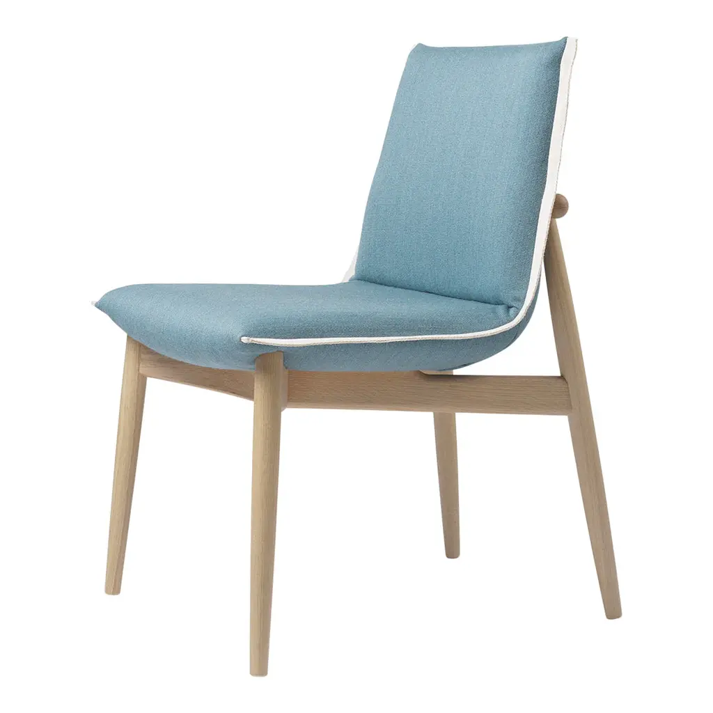 The Embrace Chair is a 2019 addition to the Embrace Series by Austrian design trio EOOS. Visually light in its expression, the chair has no armrests and will take up less space, fitting with any table. The design allows for great freedom of movement, a quality that enables users to communicate and interact freely. The upholstery is folded in two dimensions and the relaxed air of the upholstery contrasts the perfectly shaped wooden frame. It is a testimony to the unity between the craftsmanship and heritage of Carl Hansen & Son and the innovative design approach of EOOS.