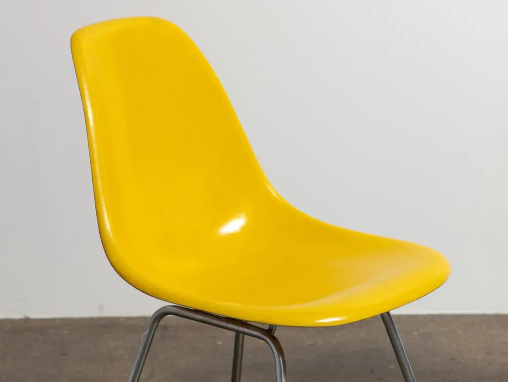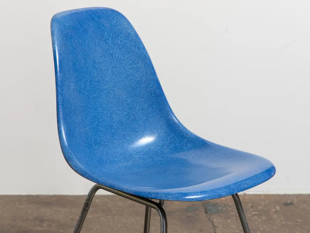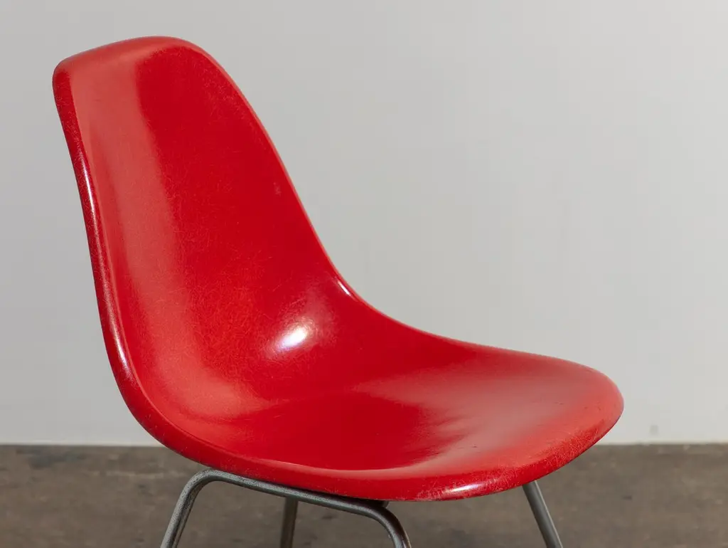Multiple Available in Primary Colors. Original Molded Fiberglass Shell Chair, designed by Charles and Ray Eames for Herman Miller. Vintage shell chairs are prized for their attractive patina, distinct thread texture and beautiful depth of color seen in the fiberglass material. Shell is stamped with the Herman Miller emblem underneath. Dated to the 1970s.OAM boasts one of the largest collections of vintage Eames fiberglass shell chairs in New York City. We maintain a comprehensive selection of colorways, including rare and sought-after colors, in multiple quantities, enabling you to mix and match a set effortlessly. Shells are available for purchase individually, or we can offer guidance on assembling a set. For large sets, our extensive inventory ensures that the set has a cohesive and streamlined look.We only send out the finest vintage examples. A close inspection ensures each shell is free of chips, cracks, or defects. We replace the rubber shockmounts that attach the chairs to the base. Finally, the chairs are carefully polished to enhance the original finish. Our meticulous restoration process ensures the chairs are comfortable, stable and is an added value included in your purchase.The Eames Shell Chair was designed on the principle of adaptability, to accommodate a variety of uses and settings. Our shell chairs are shown on original zinc-finish bases, referred to as "H bases" by Eames enthusiasts. In addition to this classic option, we stock additional base styles suitable for home or office use. We offer both vintage bases and high-quality new-production bases that are handcrafted in the USA. Our base options include, but are not limited to:Zinc H Base Black H Base Stacking Base Walnut Dowel BaseMaple Dowel Base Eiffel Wire Base Expect an estimated lead time of 7-14 days to process and dispatch your Eames Shell order. The lead time to receive your Eames shell chairs may vary depending on distance, quantity and base option. Chairs are disassembled to ensure safe transit and economical transportation costs. Assembly at home is straightforward and requires only a basic screwdriver. We provide written and video instructions for support.18.5" wide x 21" deep x 31" highSeat Height: 18.5”