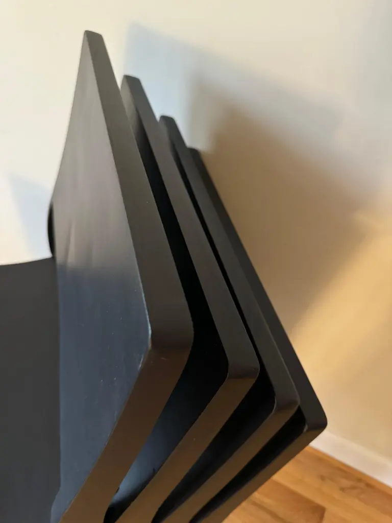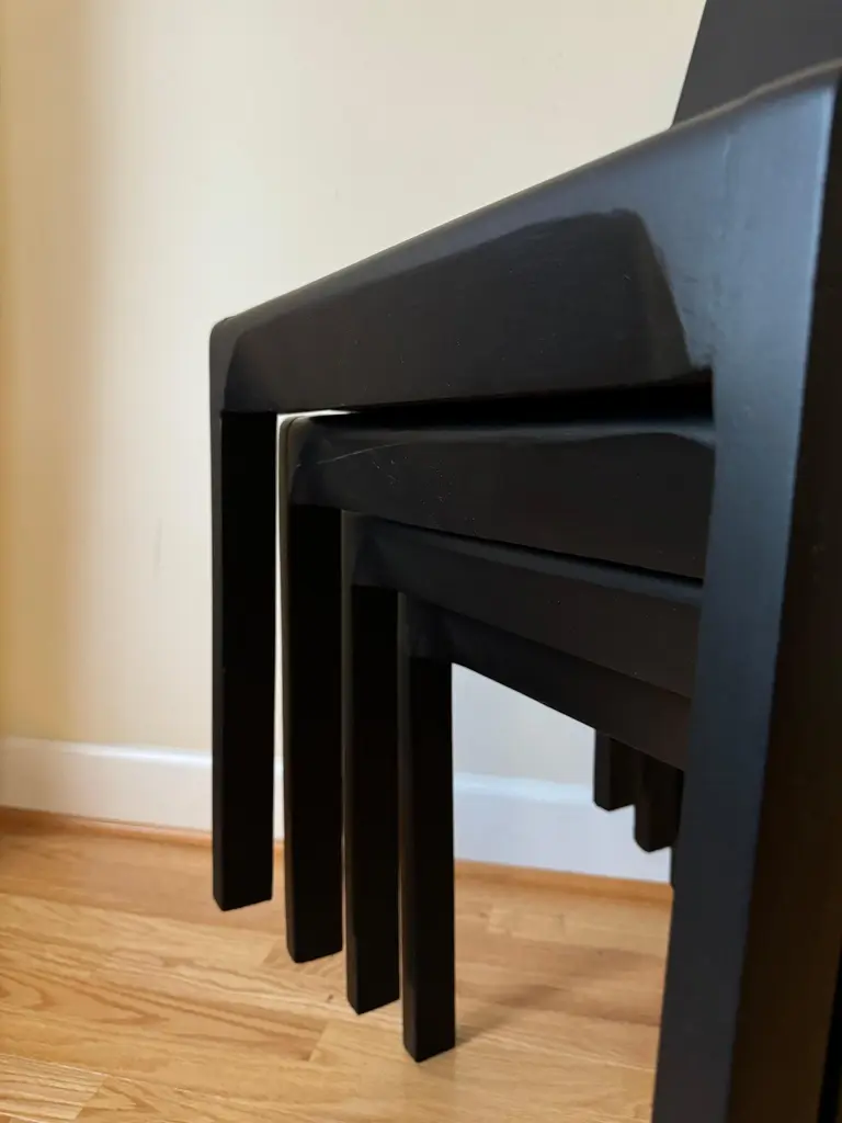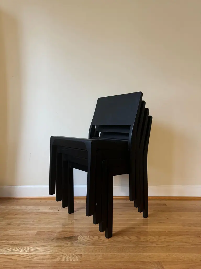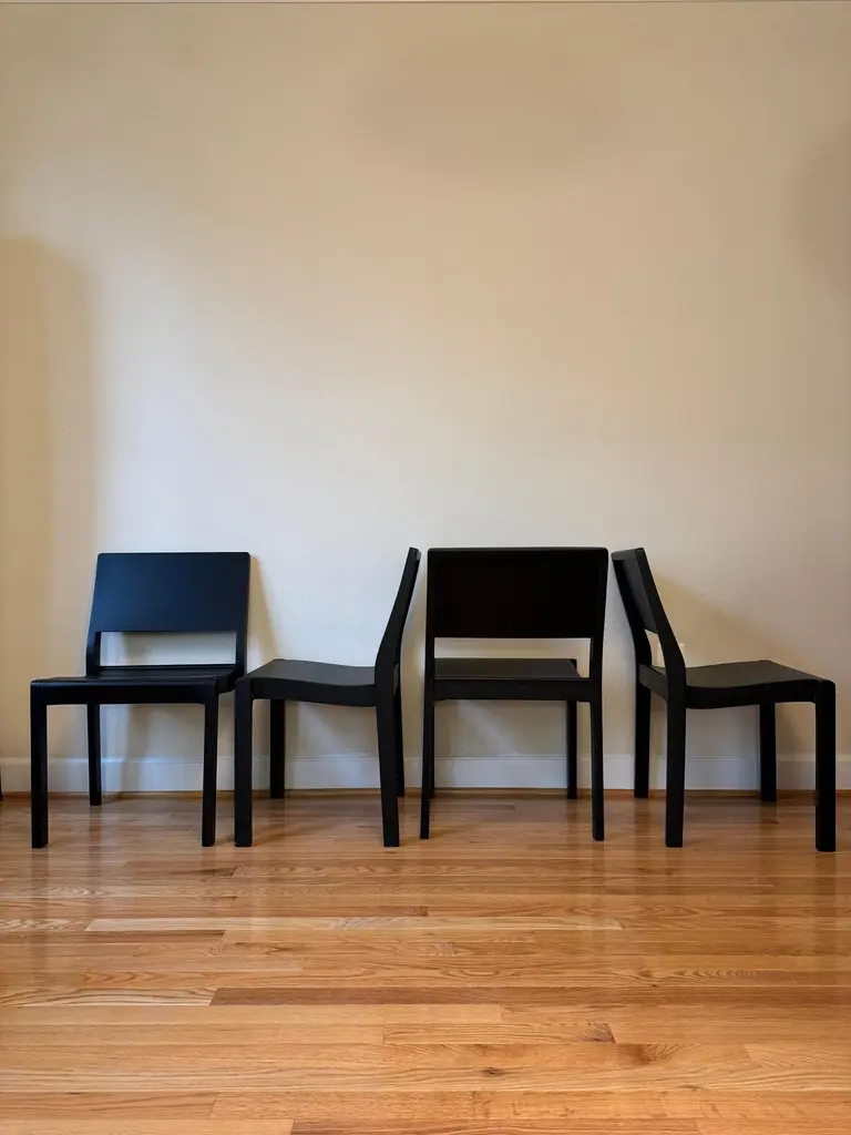 Chair 11 (with Finmar label)Designer: Alvar AaltoYear: 1929One of Alvar Aalto’s first modern furniture designs.“Advertised as the ‘auditorium chair bar none’, the so-called row chair was created in 1929 through the cooperation of master carpenter Otto Korhonen and Alvar Aalto. This stacking auditorium chair is ideally suited as furniture in public spaces. It is known to have been used for this purpose for the first time in the Jyväskylä Defence Corps Building (Alvar Aalto 1926-29).”Description from Alvar Aalto Foundation Finmar Ltd.- Finmar Ltd., a wholesale firm, was one of the major importers of Scandinavian furniture to the UK in the period 1934-65.- Finmar had imported Alvar Aalto’s plywood furniture from Finland before the war (World War II, 1939).Information from a journal article “Scandinavian Furniture in Britain: Finmar and the UK Market, 1949-1952”The chairs have been collected from the same place, which means they are a set. 4 chairs available. Price PER chair. Repainted at some point. See the images for the Finmar tag condition:1 chair has 1930's Artek Stamp(AALTO DESIGN - MADE IN FINLAND) and perfect Finmar tag1 chair has Finmar tag with some repaint residue on it. 1 chair has Finmar tag with some repaint residue and hard to read, but still see "AR" from FINMAR1 chair missing the Finmar tag, but has two nails for holding the tag. If you want a specific model from above, please contact me before placing an order