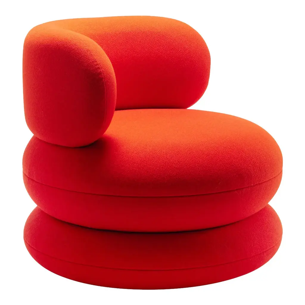 The Easy Chair stands out as one of the most visually distinctive pieces from Verner Panton's catalogue. With its soft round shapes, three-piece layered design and plush seating comfort, the imposing Easy Chair makes a strong impact in any setting – residential or professional. The Easy Chair is a lounge chair that offers generous seating space and a large u-shaped enveloping backrest that doubles as armrest as you change your seating position. The Easy Chair comes fully upholstered, making it possible to tone the design up or down depending on style and preference, allowing the chair to take on the character you want – or the space requires.