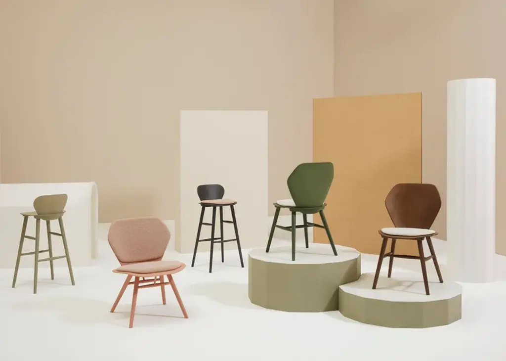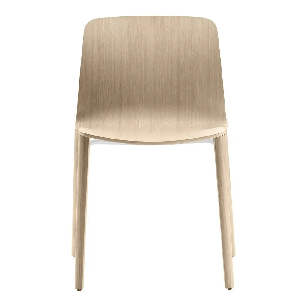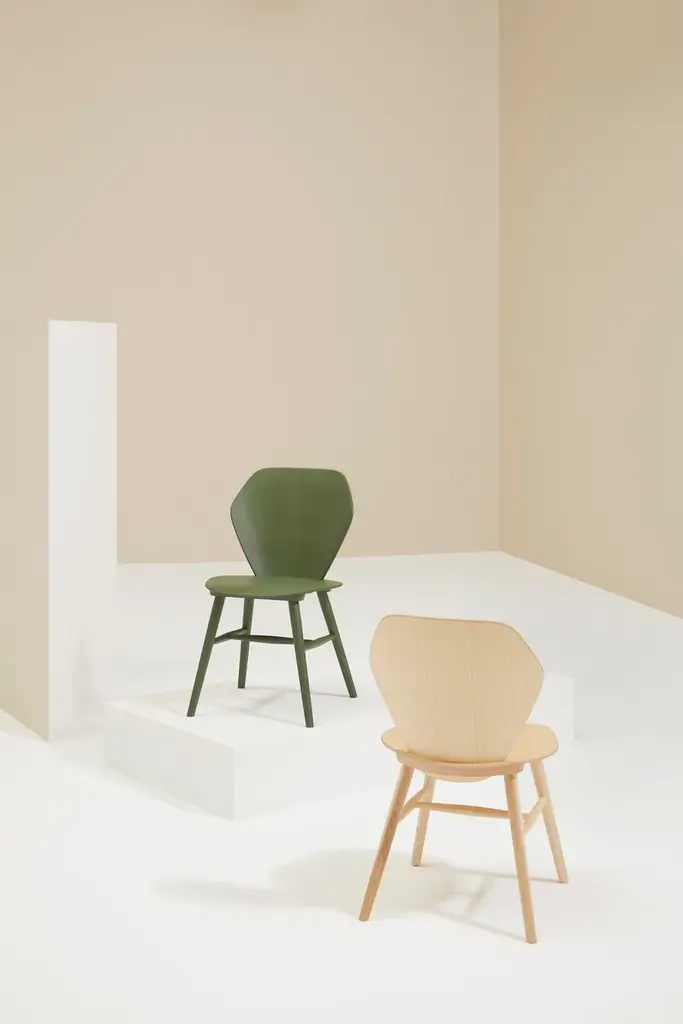 Edelweiss 290 is a solid ash wood chair with felt glides.Edelweiss is a collection of chairs, stools, and lounge seats born from Philippe Bestenheider’s desire to engage with the materiality of wood.Crafted from thin layers of plywood, the seats combine the comfort of generous surfaces with the formal and structural elegance of Swiss design.The arched shape of the wide backrest is designed to interlock seamlessly with the seat, creating a balance between tension and compression forces that evokes a micro-architecture and references traditional Alpine chairs.The chair is available in two versions—with a solid or perforated backrest. The version with perforations is even lighter, featuring graphic cutouts that push material reduction to the limit and result in an agile, contract-friendly seating solution.