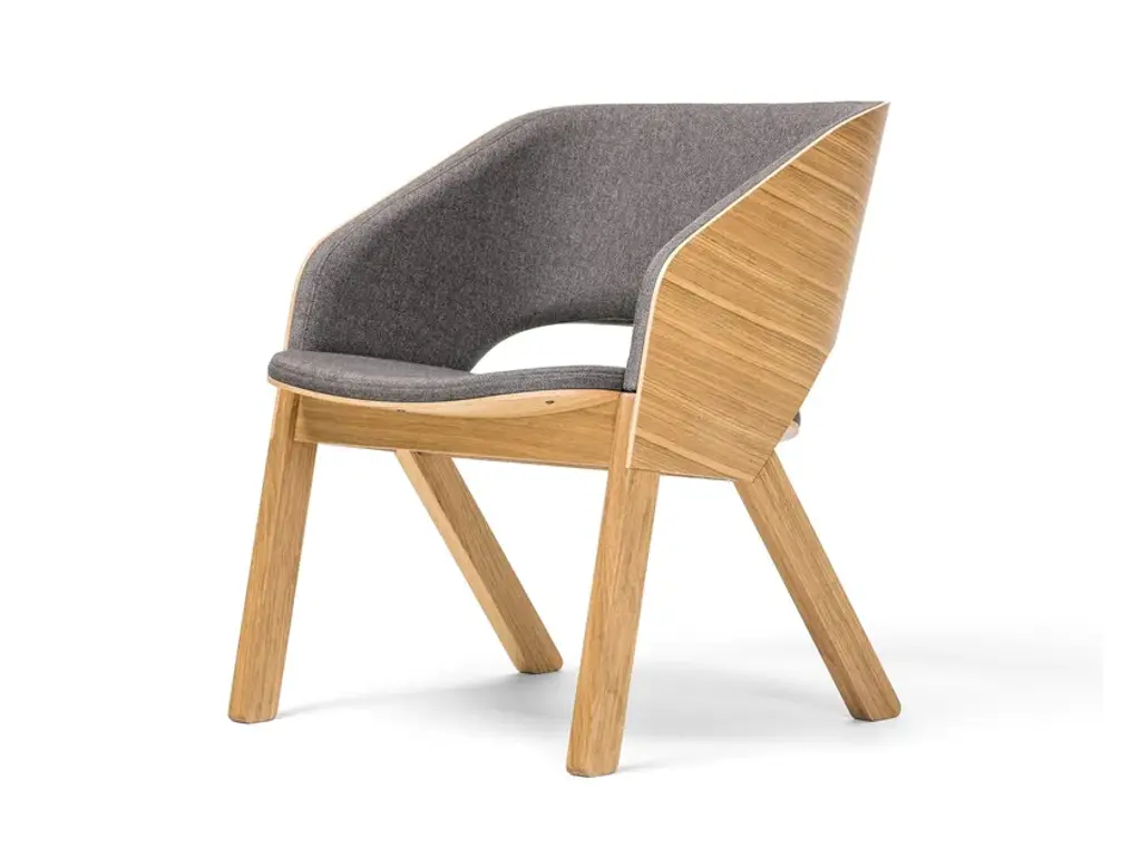 Edelweiss 297 is a solid ash wood chair with felt glides and upholstered seat.Edelweiss is a collection of chairs, stools, and lounge seats born from Philippe Bestenheider’s desire to engage with the materiality of wood.Crafted from thin layers of plywood, the seats combine the comfort of generous surfaces with the formal and structural elegance of Swiss design.The arched shape of the wide backrest is designed to interlock seamlessly with the seat, creating a balance between tension and compression forces that evokes a micro-architecture and references traditional Alpine chairs.The chair is available in two versions—with a solid or perforated backrest. The version with perforations is even lighter, featuring graphic cutouts that push material reduction to the limit and result in an agile, contract-friendly seating solution.