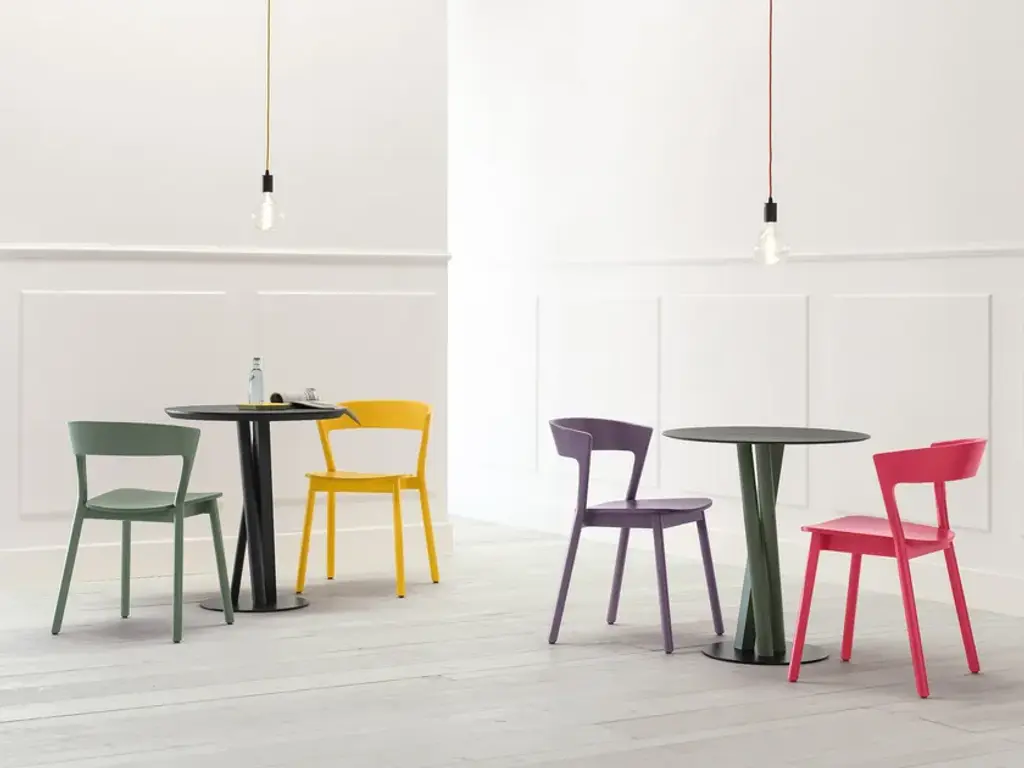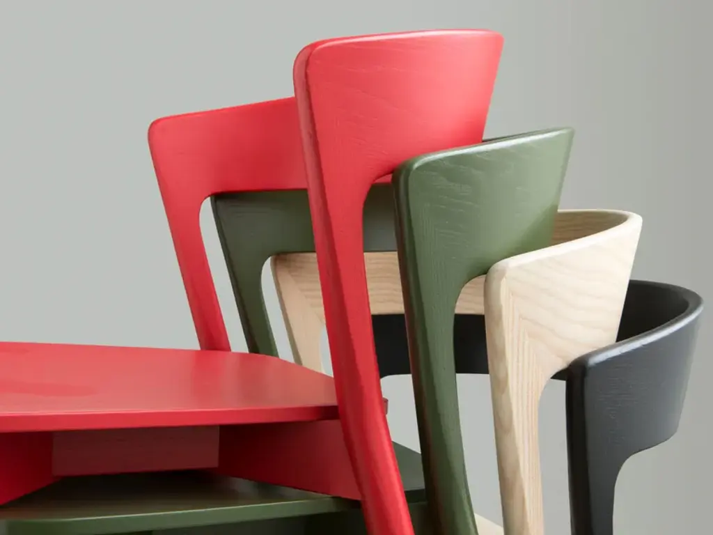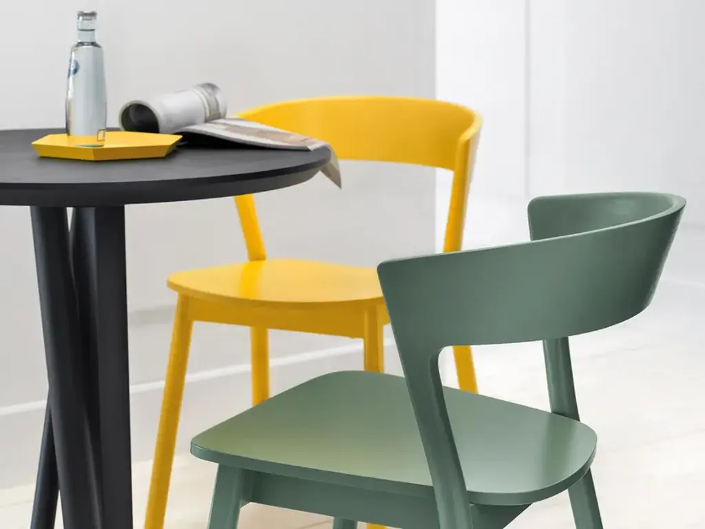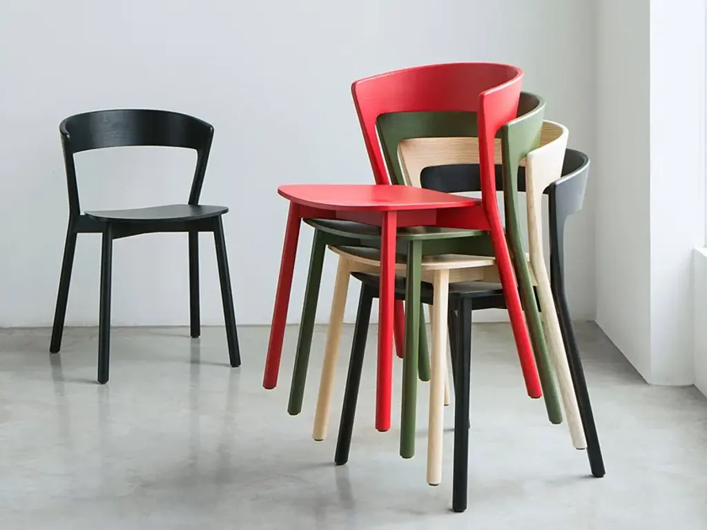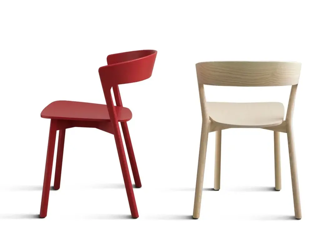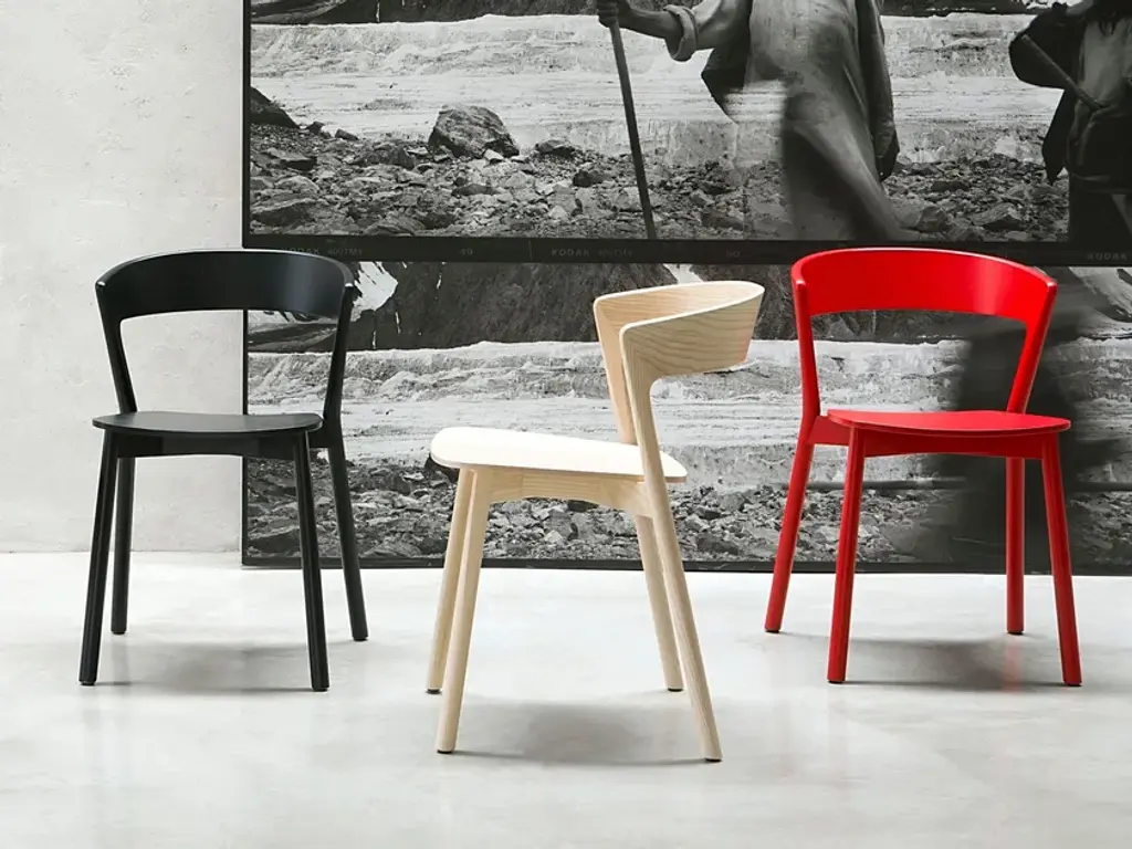 Stackable chair with plywood seat (beech/ash) from the EDITH collection, designed by Massimo Broglio.
