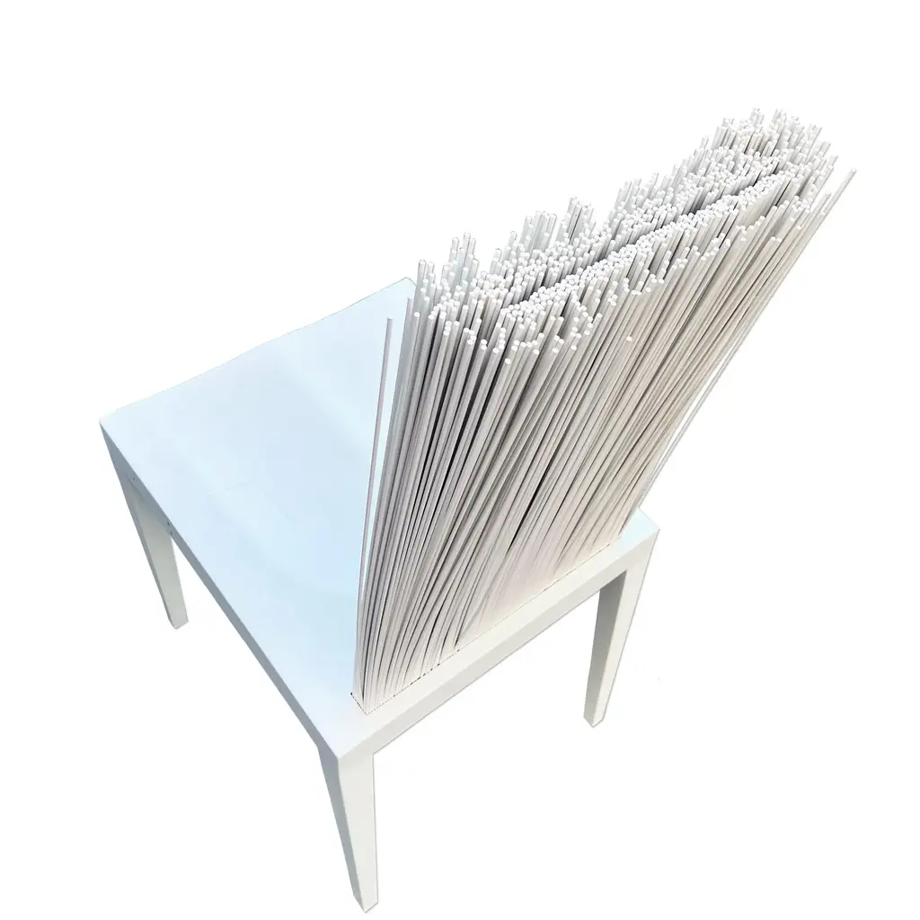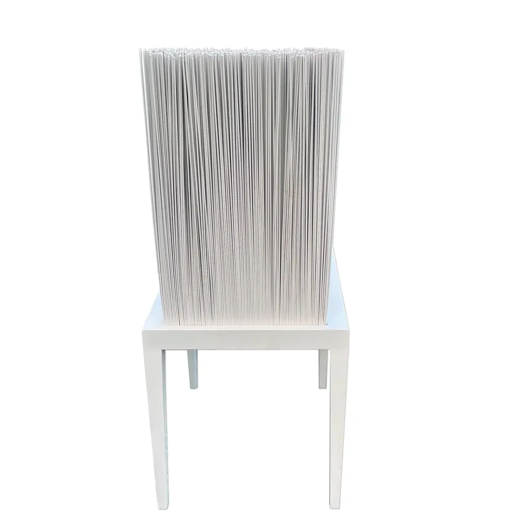 The Jenette chair is a masterpiece of design by Fernando e Humberto Campana for Edra. Crafted with meticulous attention to detail, this chair features a metal structure entirely enveloped and shaped in rigid polyurethane, creating a seamless blend of strength and flexibility. The backrest, composed of 900 flexible PVC strands in matching color, offers unparalleled comfort and support that adapts to multiple sitting positions. Thanks to its innovative design, the Jenette chair bridges the gap between rigidity and flexibility, embodying a perfect balance between technology and beauty. Each piece is meticulously handcrafted in Italy, where traditional craftsmanship meets modern technology to ensure the highest quality. The Jenette chair is not just a piece of furniture but a work of modern art that brings both functionality and aesthetic appeal to any space.