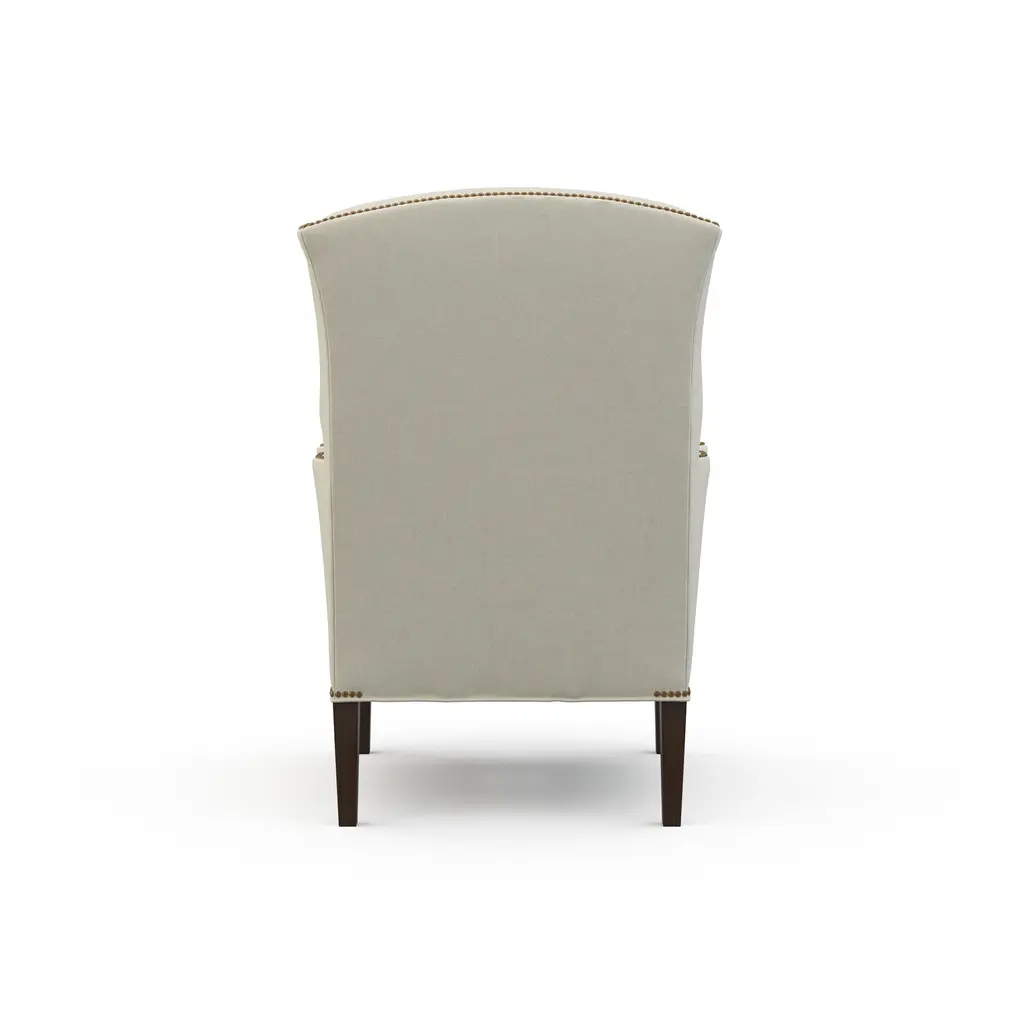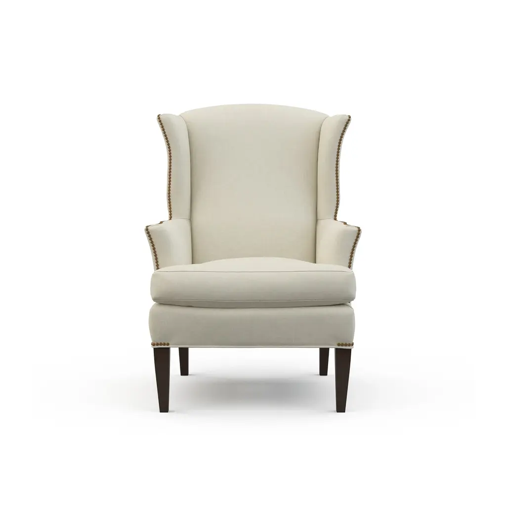 A perfect seat for reading and relaxing by the fire, the Edwardian Chair features traditional lines with a hint of contemporary angles. The tall back and nail trim offer a traditional feel while the slight squaring off of the corners and the chunky legs provide a modern flair. With the fabric of your choice, easily lean into either design style, or opt for something that balances both. Ships In 8-10 Weeks Tight back One loose seat cushion As Shown Fabric: Rayburn Oatmeal As Shown Finish: Antique Walnut If you choose to purchase COM, once you have placed your order a customer service rep will contact you regarding where to send your fabric. Please note that current lead time is 17-19 weeks once your fabric arrives at the factory, and if unused fabric is under 1.5 yards, it cannot be sent back to you.This product can be special ordered in additional fabrics, leathers, finishes, and cushion fillings. Click here to email us for for additional information about special ordering.This image is for illustrative purposes only. The colors shown are accurate within the constraints of lighting, photography, and the color accuracy of your screen.