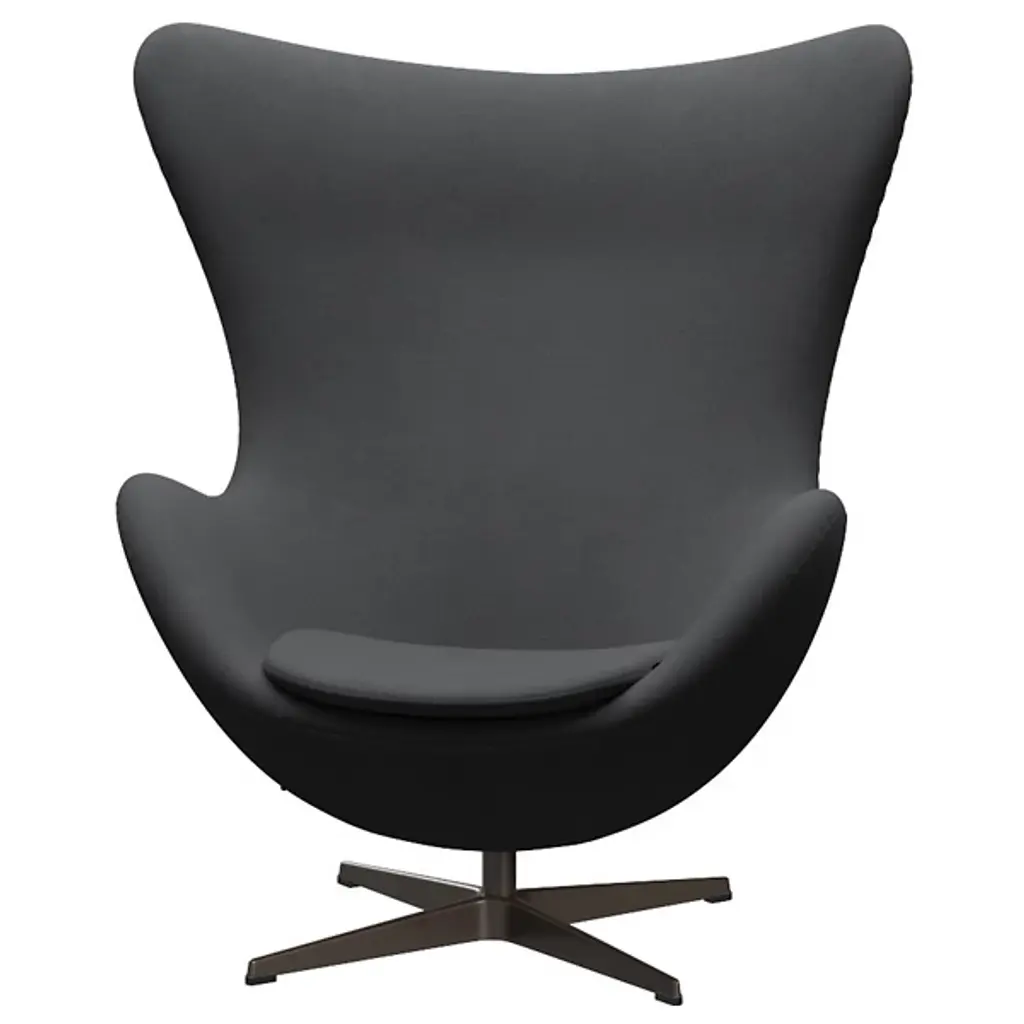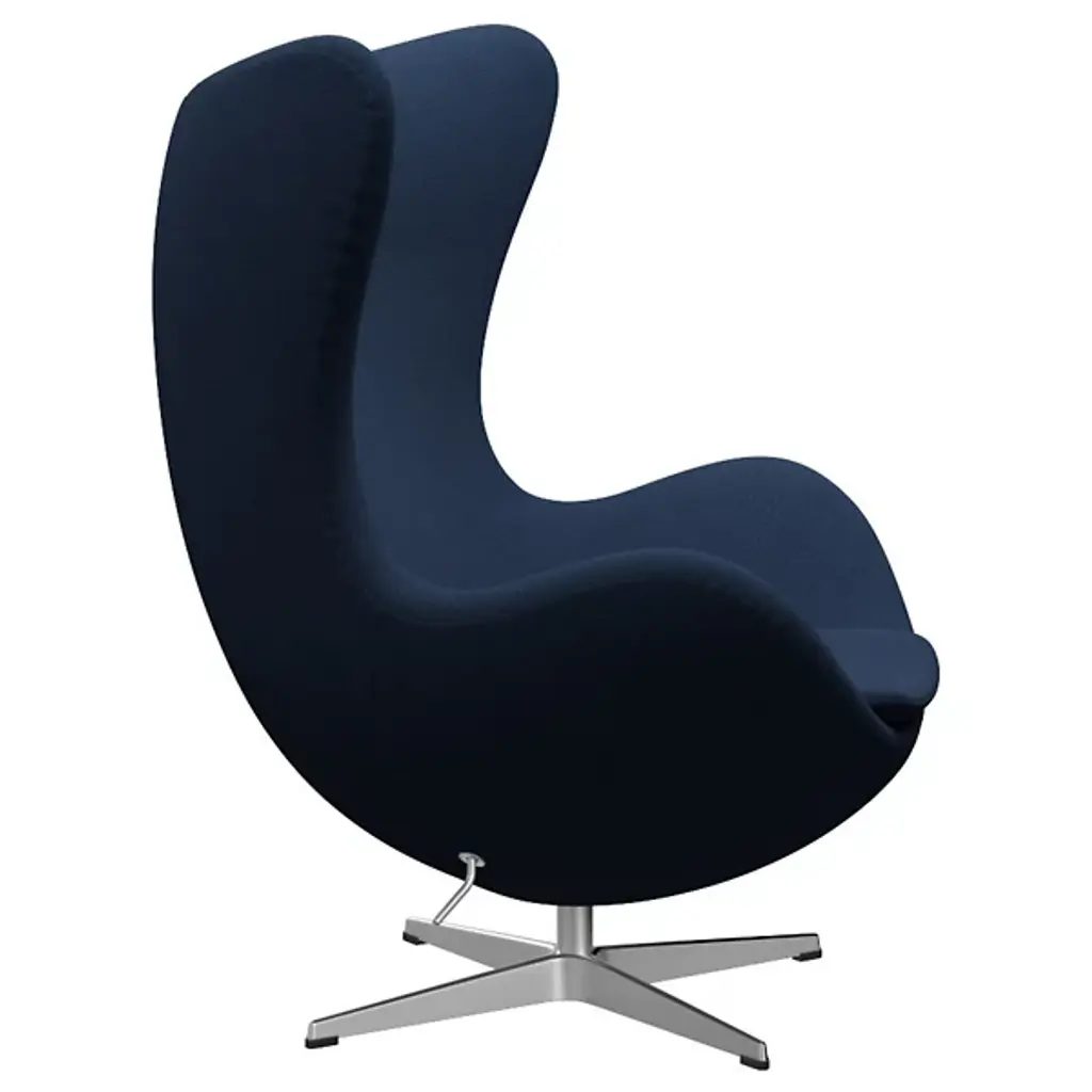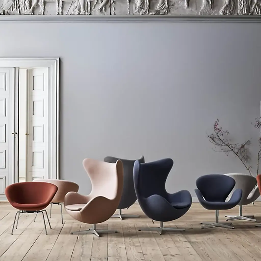 The Fritz Hansen Egg Chair was originally designed by Arne Jacobsen in 1958 for the lobby and reception areas of the Royal Hotel in Copenhagen. In contrast to the hotel's austere lines, the chair is round and sculptural, with inward curves that guarantee a bit of privacy and supreme comfort. Available in a wide range of fabric upholstery options.