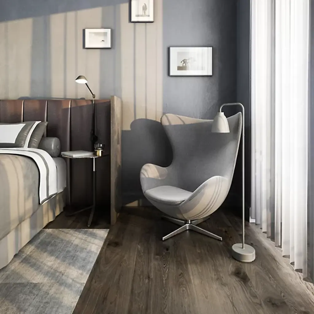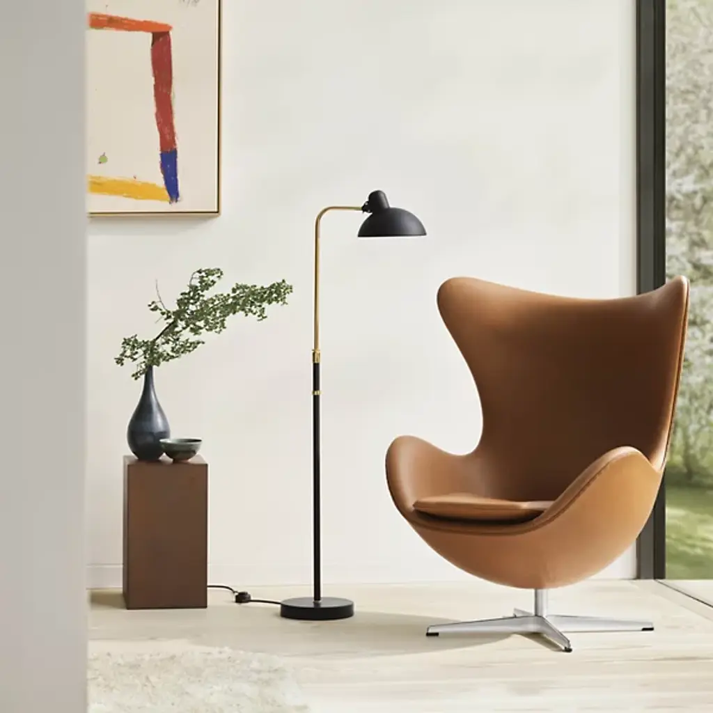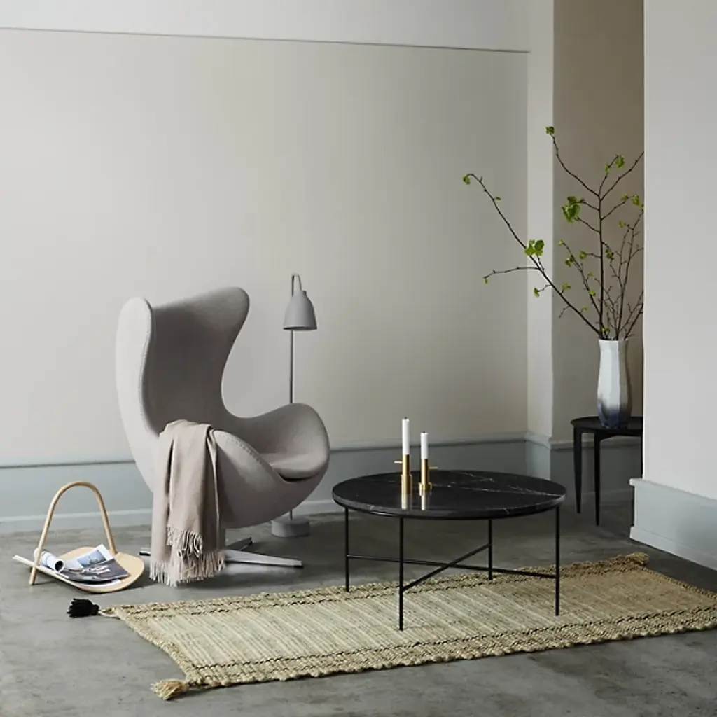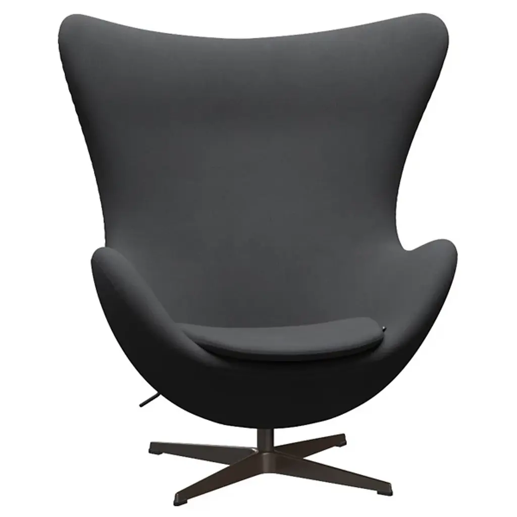The Fritz Hansen Egg Chair was originally designed by Arne Jacobsen in 1958 for the lobby and reception areas of the Royal Hotel in Copenhagen. In contrast to the hotel's austere lines, the chair is round and sculptural, with inward curves that guarantee a bit of privacy and supreme comfort. Available in a wide range of fabric upholstery options.