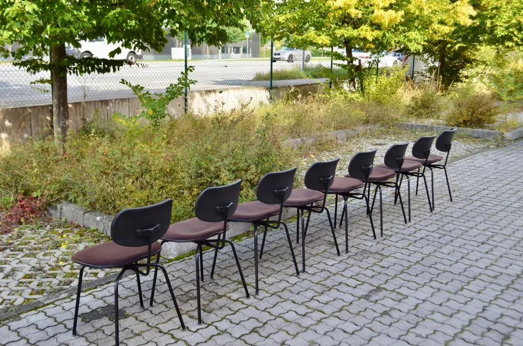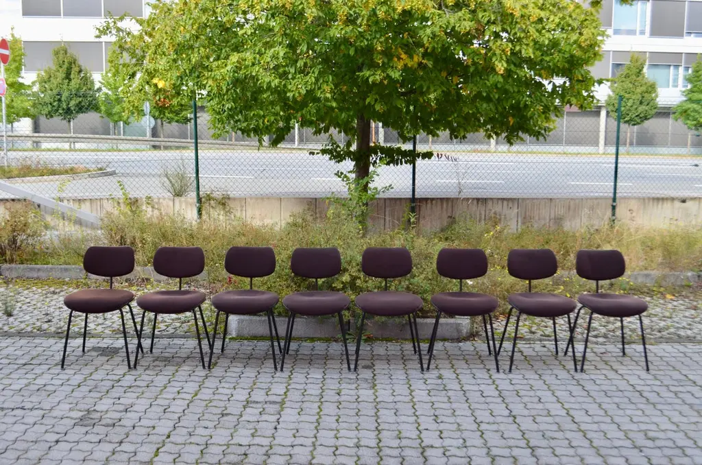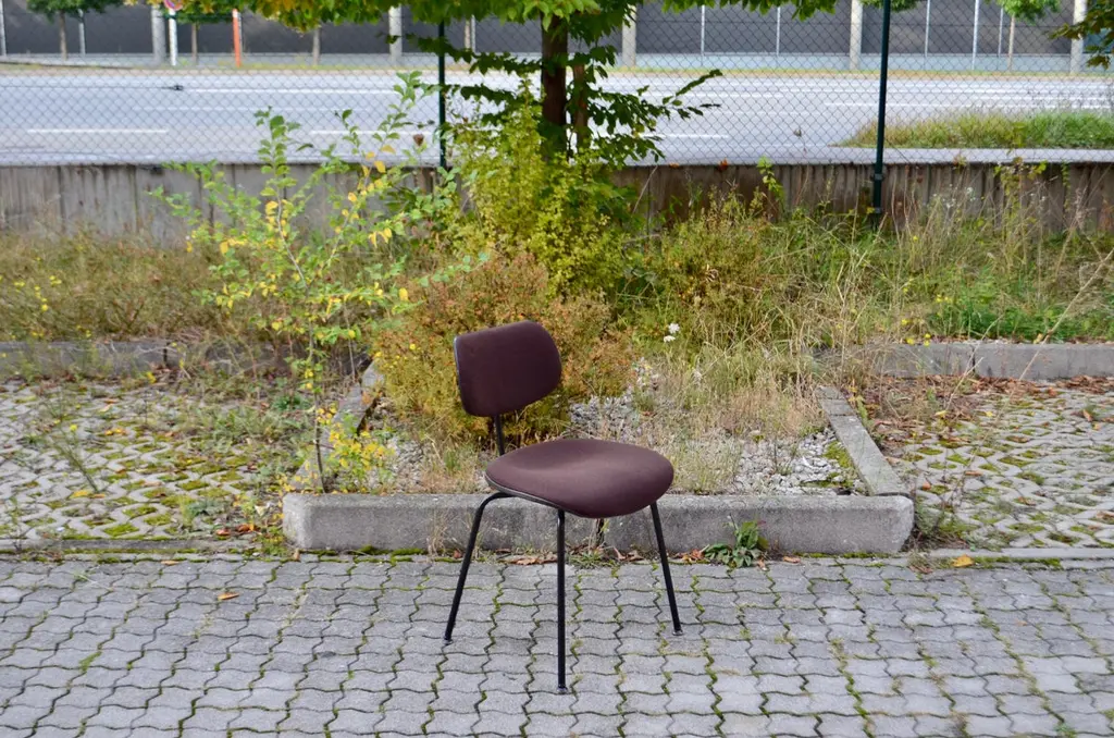 Egon Eiermann chair Modell SE 68 for Wilde & Spieth.This is the brighter seating version .It is not stackable.Brown Hopsak fabric and black feet.Produced in 1993 and in good condition.Price per 1 Chair.We have 16 Chairs in Stock.