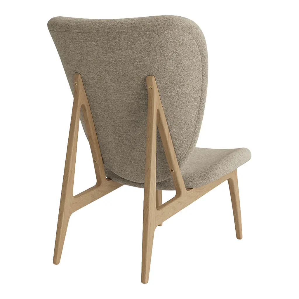 The Elephant Chair, designed by Kristian Sofus Hansen and Tommy Hyldahl, is a modern interpretation of Scandinavian minimalism combined with Japanese aesthetics. The design is inspired by Danish upholstered chairs of the 1950's, while drawing visible characteristics from the already iconic Mammoth Chair. The result is a light and elegant lounge chair where the Elephant ear shaped back gently curves around the body providing superior comfort. The legs are designed as one single profile without any visible joints. This enriches the experience of the material strength and exchange between the light and heavy dimensions; “elegant and simple but sturdy without being clumsy".