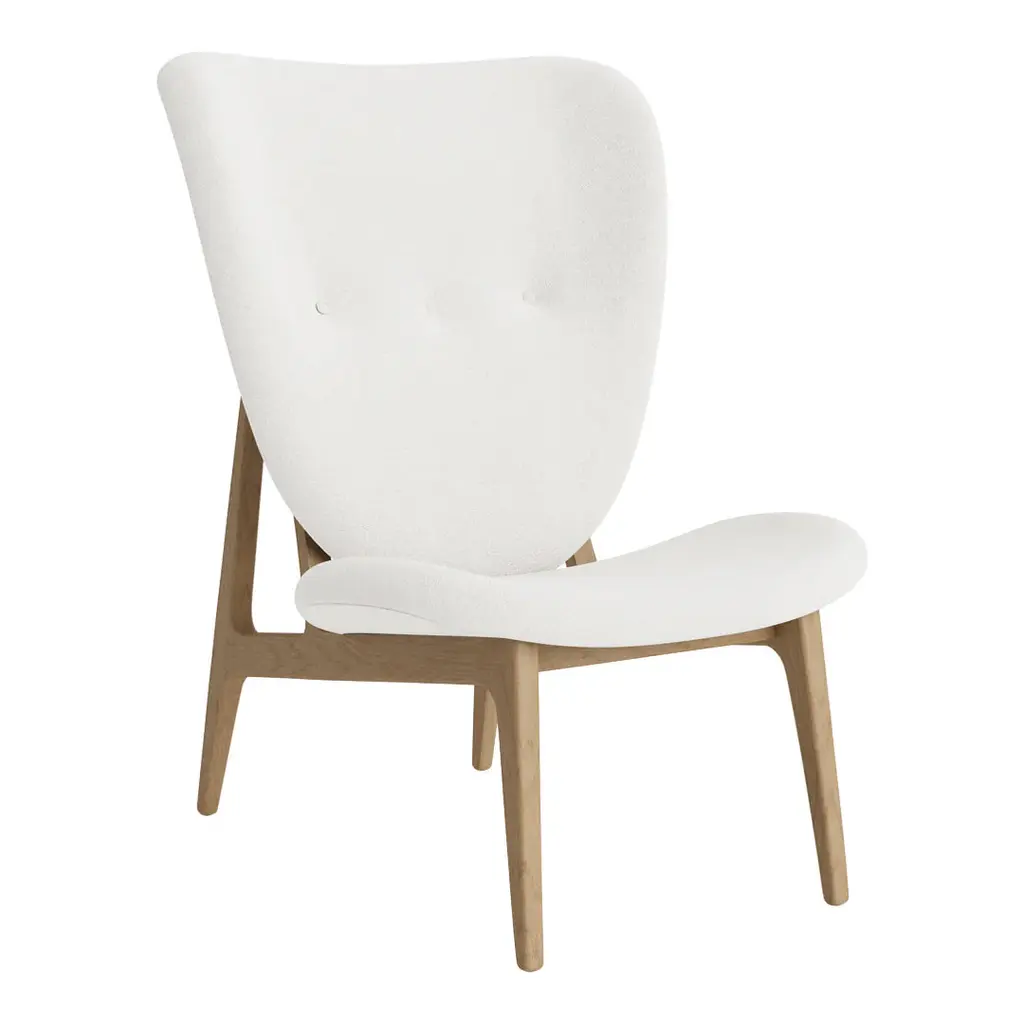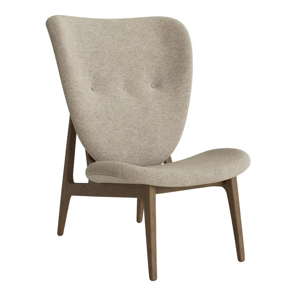 The Elephant Chair, designed by Kristian Sofus Hansen and Tommy Hyldahl, is a modern interpretation of Scandinavian minimalism combined with Japanese aesthetics. The design is inspired by Danish upholstered chairs of the 1950's, while drawing visible characteristics from the already iconic Mammoth Chair. The result is a light and elegant lounge chair where the Elephant ear shaped back gently curves around the body providing superior comfort. The legs are designed as one single profile without any visible joints. This enriches the experience of the material strength and exchange between the light and heavy dimensions; “elegant and simple but sturdy without being clumsy".