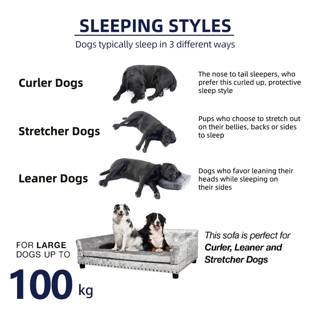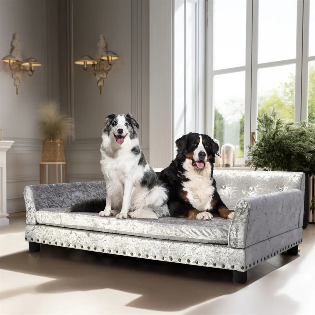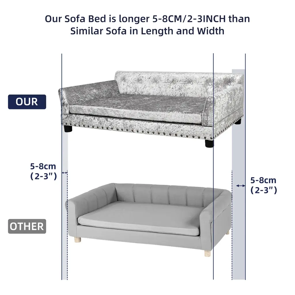 Elevated Pet Dog Bed Silver Velvet Upholstered Pet Sofa Couch Chair - 47.2x29x15.7 Inch
