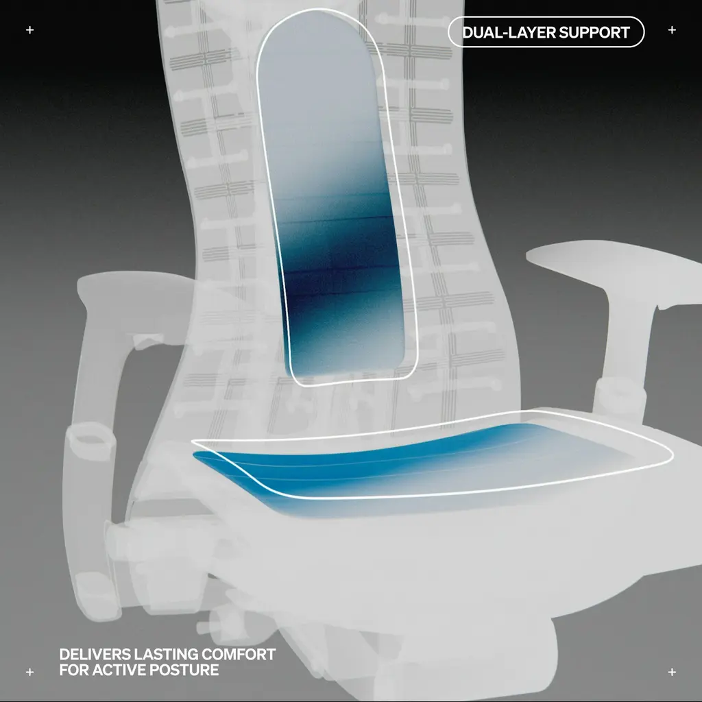 Tested and approved by ergonomic experts and pro gamers, the Herman Miller x Logitech G Embody Gaming Chair is ready to advance your play. Enhanced specifically for gamers' needs, the Embody Gaming Chair is engineered to encourage movement, support a range of postures (from active and upright to reclined and relaxed), eliminate pressure buildup, and even keep you cool with an extra layer of copper-infused foam.