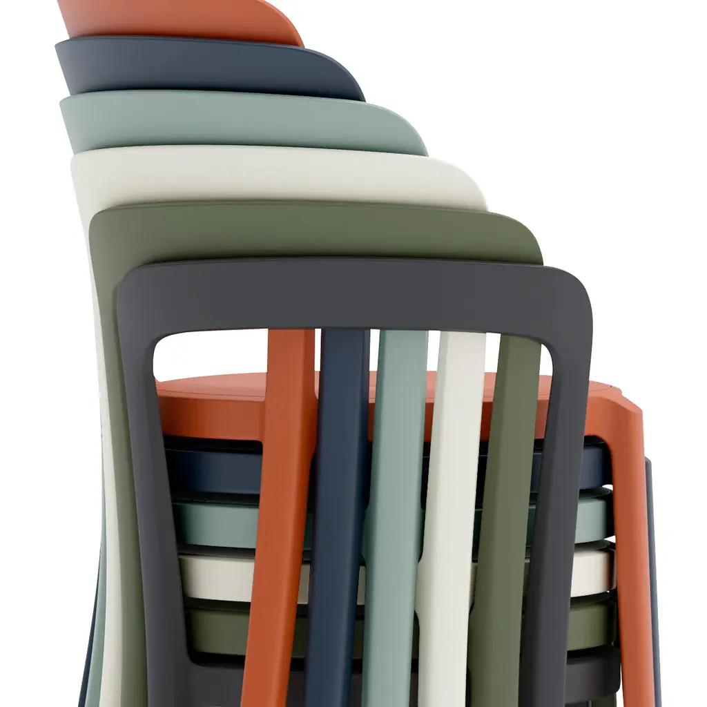 Made in the USA from RPET, a recycled and recyclable polymer produced from reclaimed plastic water bottles mixed with fiberglass, the lightweight On & On Chair is stackable in a spiral (up to six). Ideal for any indoor or outdoor space, the 31" high On & On Chair is designed by Edward Barber and Jay Osgerby for Emeco, an American manufacturer represented in MoMA’s collection.