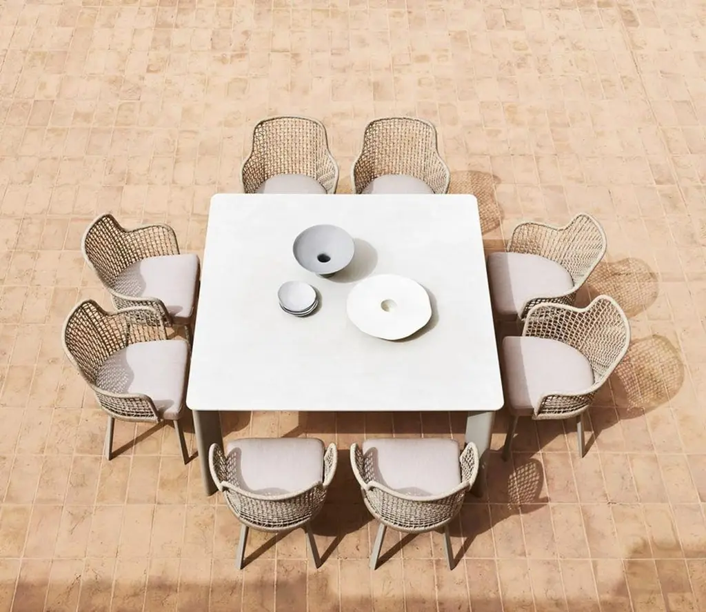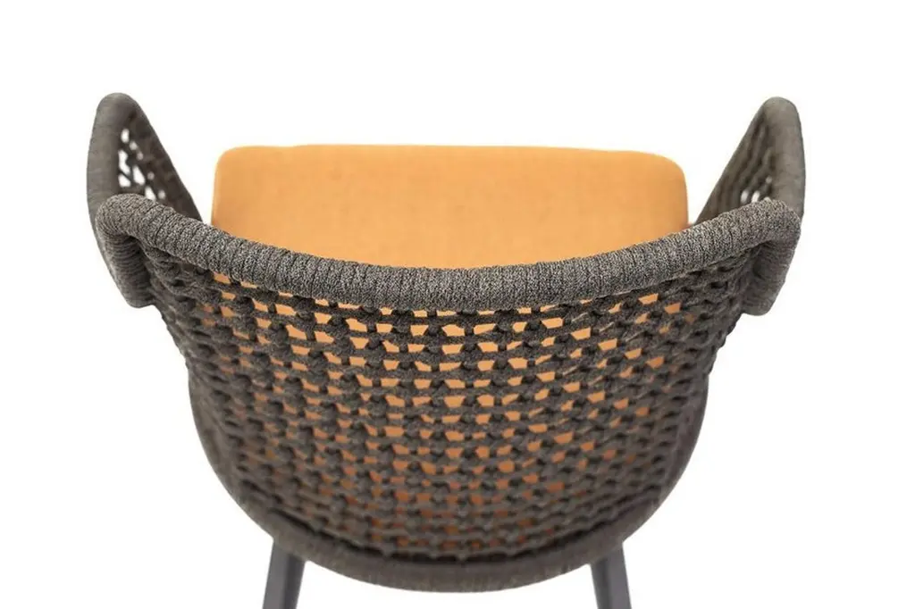 Introducing the Emma Chair, a perfect blend of contemporary style, versatility, and comfort. This elegant armchair stands out with its iconic hand-woven backrest, offering numerous customization possibilities to suit any outdoor setting. The molded plastic seat is specifically designed for outdoor use, allowing efficient water drainage to keep it dry and comfortable. The Emma Chair's seat can be upholstered in a variety of fabrics or textures, featuring a polypropylene seat structure for durability.The backrest is crafted with a powder-coated aluminum frame, available in woven rope, textured finishes, or plywood options, all suitable for outdoor use and covered in weather-resistant fabric. The chair's legs come in either sturdy aluminum or solid iroko wood, adding to its robust and elegant design. Designed to withstand the elements, the Emma Chair boasts a weatherproof and UV light-resistant structure, ensuring longevity and enduring style in any environment. This chair is appreciated worldwide for its sophisticated aesthetic, adaptability, and exceptional comfort.Note: Minimum order quantity of four chairs.We do our best to expedite production and to ship and deliver product within the listed lead time, however current lead times might be longer due to global shipping backlog and delays. These delays are out of our control and cannot be a reason to cancel an order.