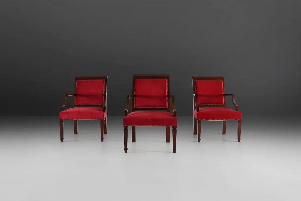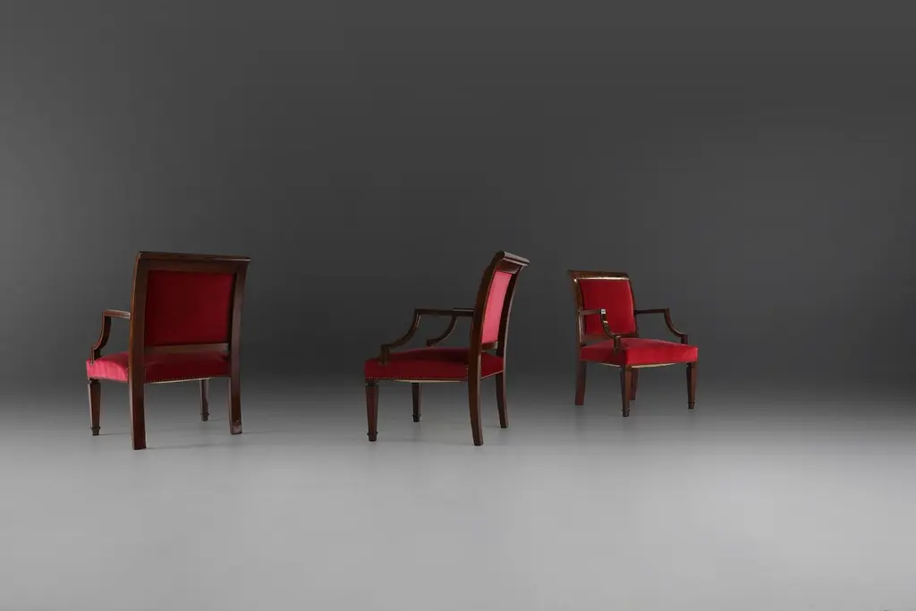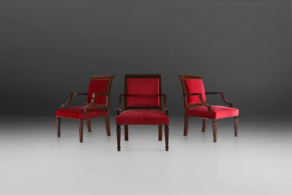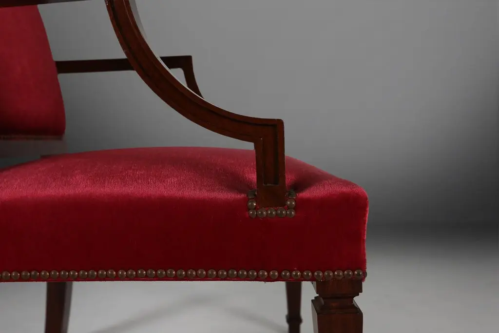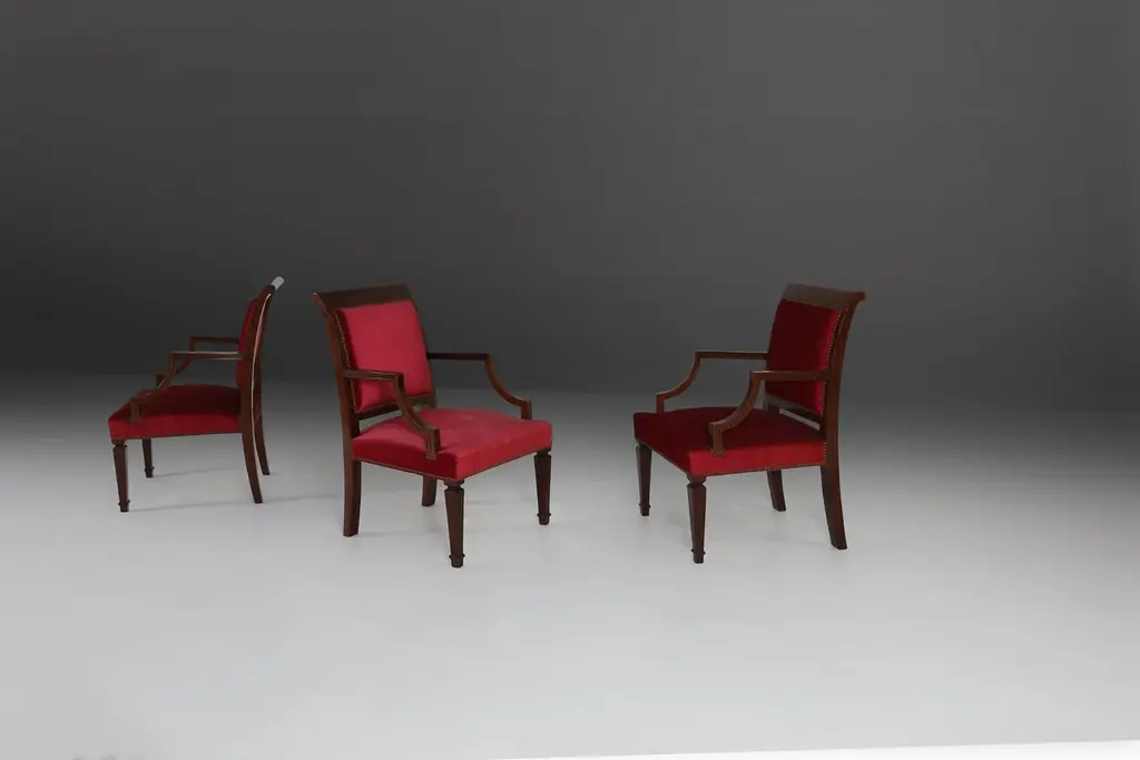 Empire style chairs made in high quality wood and red fabric. in a very good condition.PRICE PER PIECE.