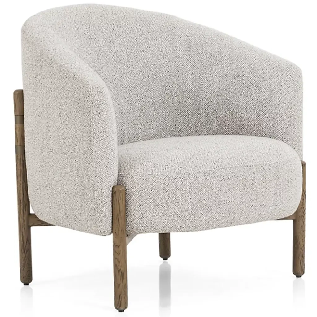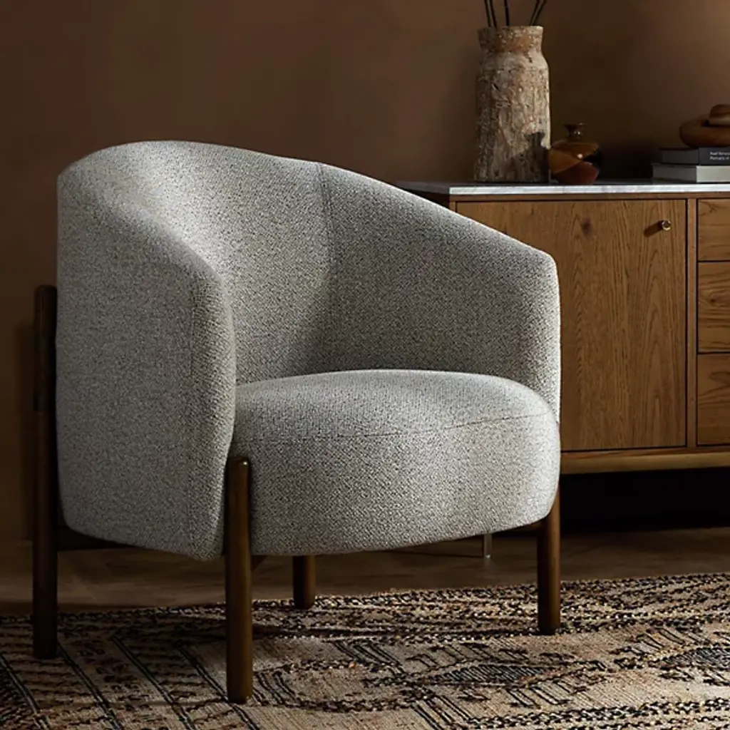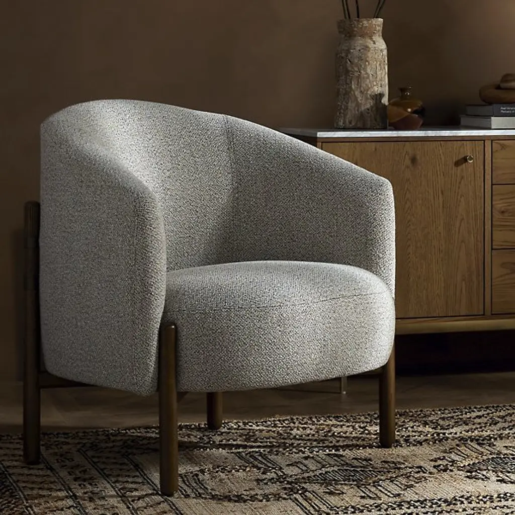 The Enfield Chair from Four Hands boasts a contoured seatback and rounded seat, providing exceptional support for a relaxing seating experience. Upholstered in exquisite aster stone fabric, this chair has a textured look that adds a touch of sophistication to your setting. The fabric is specially designed to withstand spills, heavy traffic, and wear, giving this piece its longevity. Crafted with a solid oak and iron frame, this mid-century modern chair combines style and strength.