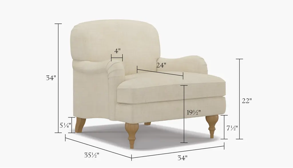 With pleated arms, a rounded seat, and ornate wood legs, our English Roll Arm Chair is brimming with traditional charm. The reversible, down alternative cushion offers a soft and supportive sit with minimal cushion fluffing required.
