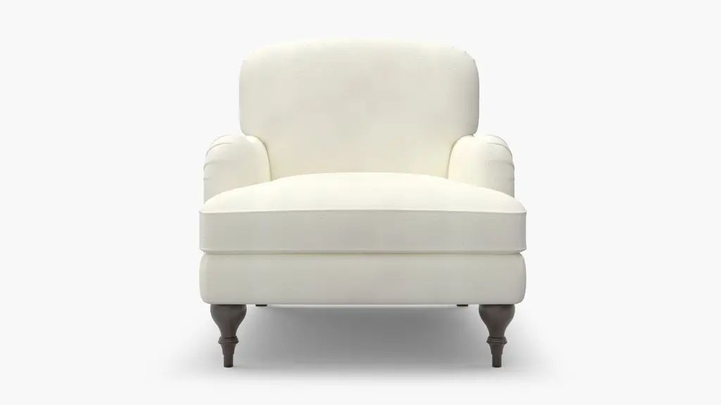 With pleated arms, a rounded seat, and ornate wood legs, our English Roll Arm Chair is brimming with traditional charm. The reversible, down alternative cushion offers a soft and supportive sit with minimal cushion fluffing required.