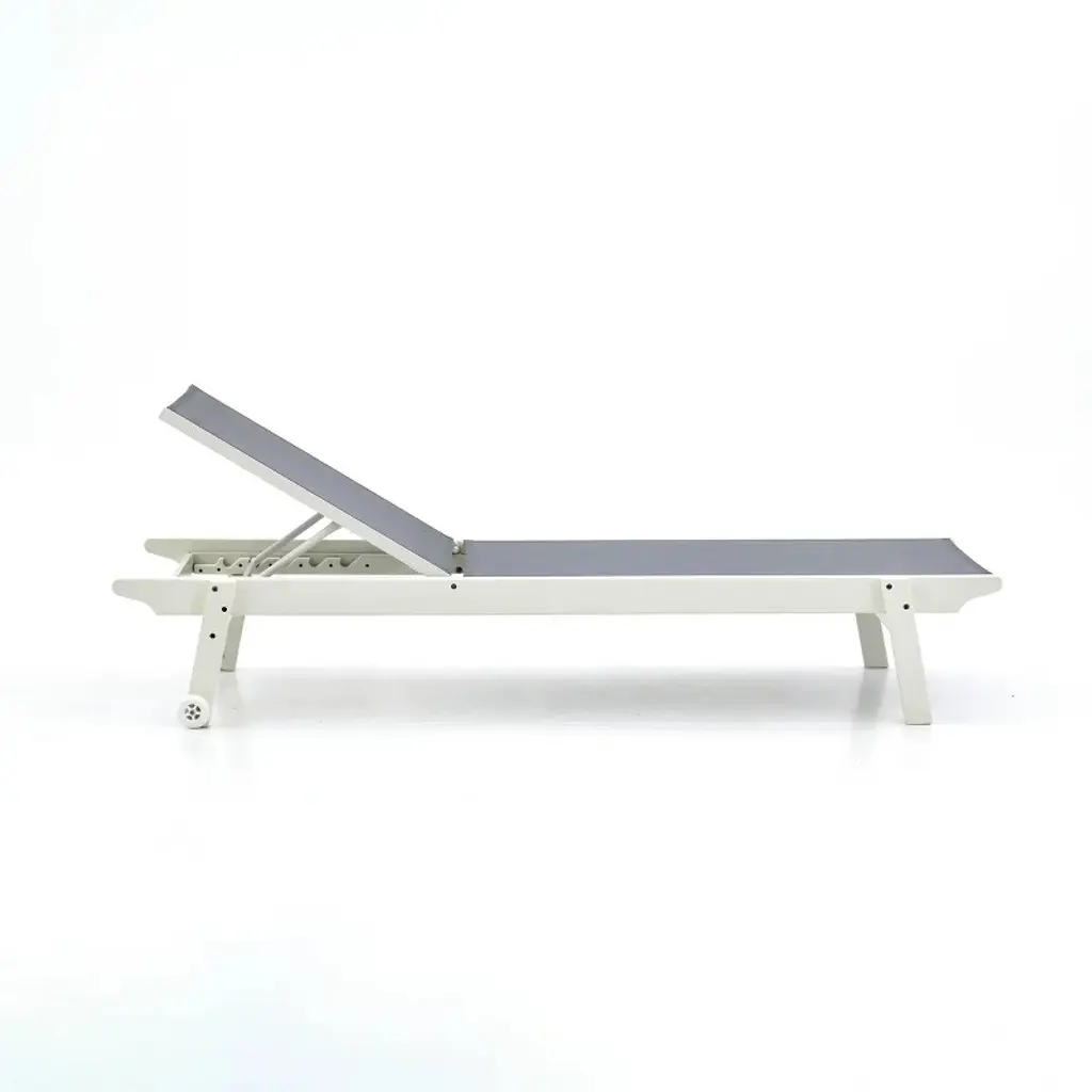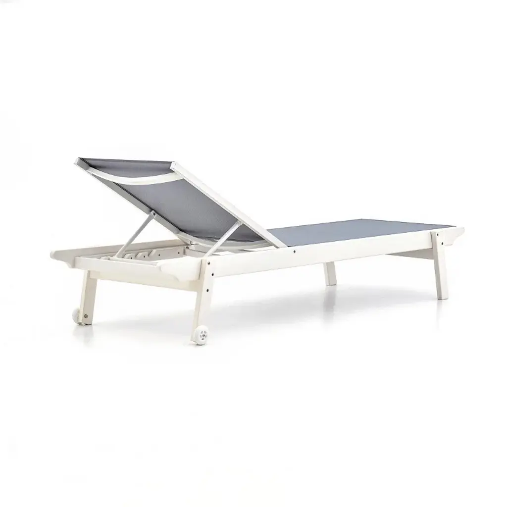 Experience premium relaxation with this engineered patio lounger featuring an adjustable recline mechanism for personalized comfort. Solid wood frame with sleek lacquered finish houses hightension ventilation mesh providing ergonomic lumbar support. Integrated wheelbase enables effortless repositioning on decks or poolside.