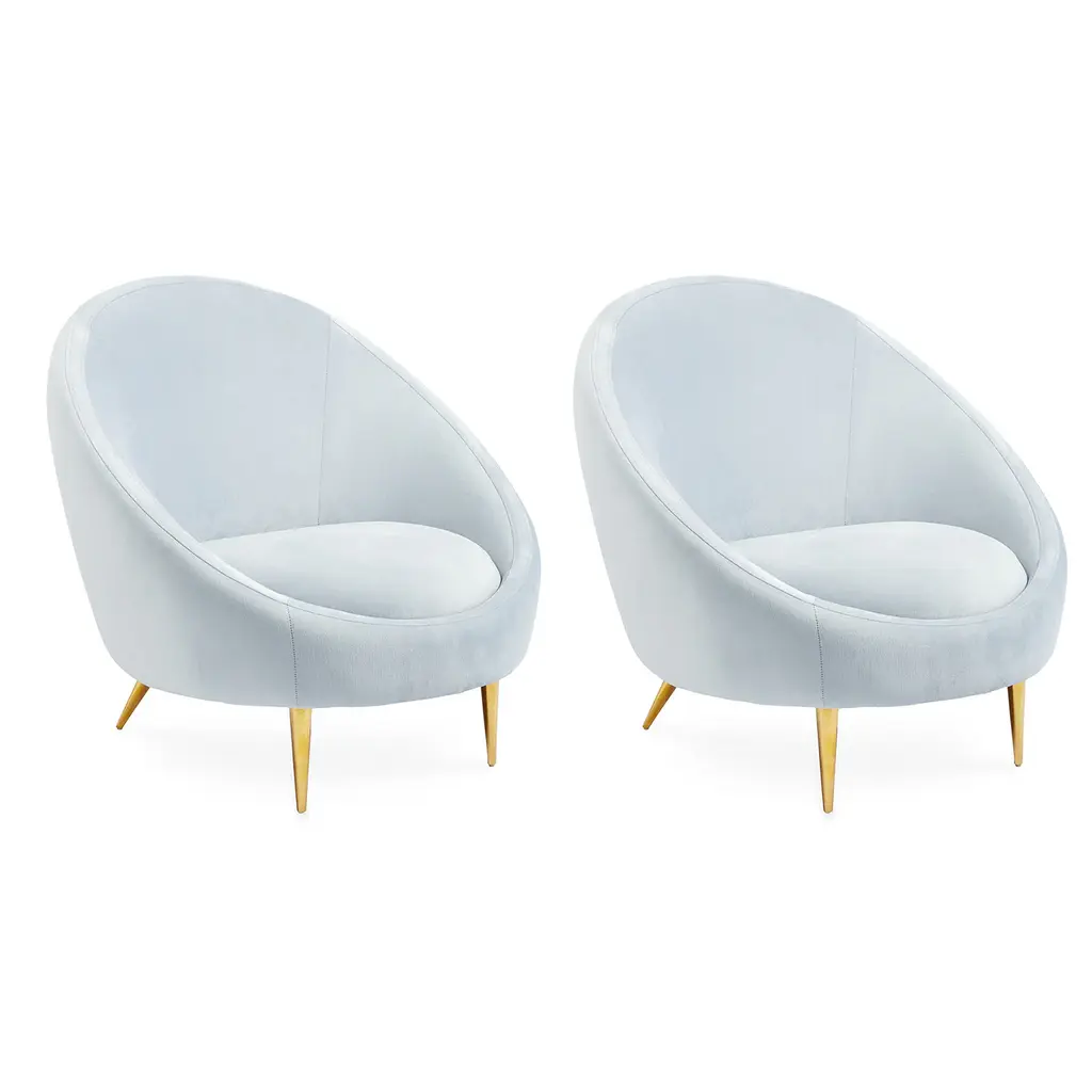 Heaven Sent. Our sleek Ether Chair packs a powerful punch. The minimalist gesture of the capsule-inspired silhouette provides surprising comfort, while gleaming brass stiletto legs add lift and polish fit for a formal parlor. Elegant and exceptionally hardworking velvet finishes off the fabulousness, or create a haute hygge moment with super-luxurious shearling. Perfect in pairs, or tuck one in a corner to create a cocoonish nook. Set includes two Bergamo Ice Ether Chairs, or two Shearling Ether Chairs. Bundles are not eligible for additional discounts.