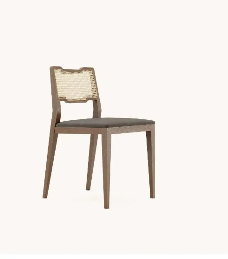 Eva chair by DomkapaMaterials: Walnut Stained Ash, Velvet.Dimensions: W 46 x D 53 x H 81 cm.Also available in different materials. The epitome of comfort, the best description of Vianna chair. Supported by four wooden legs, the padded seat and back cushion create the perfect accessory for both domestic and public settings. Available in two versions, with or without armrests, the top of the backrest arc outwards for maximum relaxation. Along its extremities, sophisticated piping adds a timeless touch to the design. Vianna chair is a classic design with a modern twist, making this a go-to choice for any design project.Domkapa holds a tremendous passion for detailed stitching, presenting several similarities to the haute-couture philosophy focused on the value of a “made by hand”. Based in Portugal, Domkapa was founded in 2009 as a Private Label. The long and fruitful path, full of experience and achievements inspired the brand’s new identity and independence, in 2017.Domkapa challenges its team to create the perfect daily meeting between design and comfort in each piece of the brand’s collections. Our design team works side by side with the production, and this organic synergy allows the creation of innovative designs.