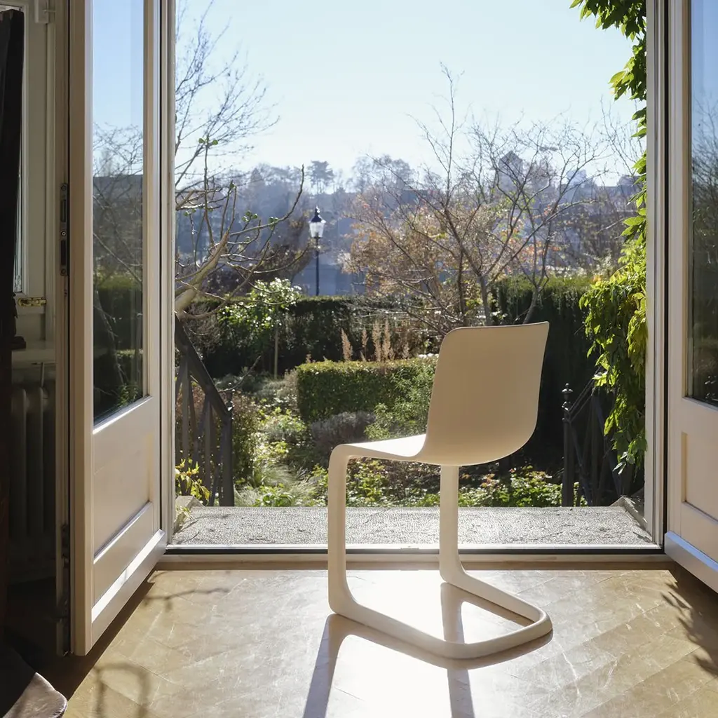 Vitra and Jasper Morrison have successfully translated the basic principle and distinctive comfort of the classic cantilever chair into an ergonomic model made of 100% recyclable polypropylene: EVO-C.
