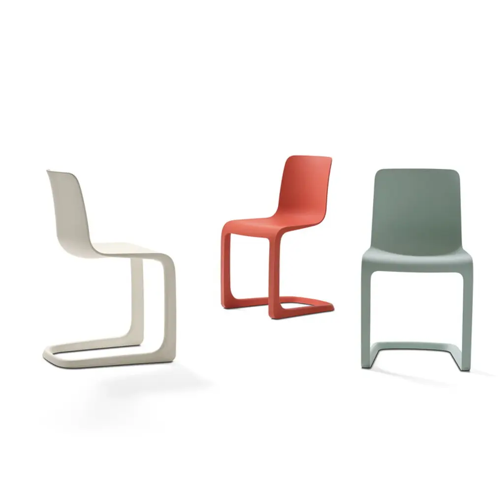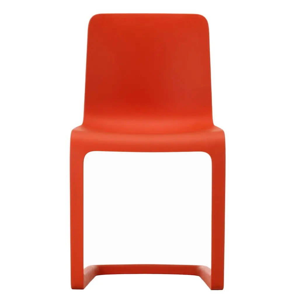 The Vitra EVO-C is a plastic chair designed by Jasper Morrison in 2020, whose sleek expression represents the supernormal design that is typical of Morrison, stripped of all unnecessary details. The chair is a fresh interpretation of the classic cantilever chair: it seamlessly combines the L-shaped leg structure familiar from metal-framed chairs with an ergonomic seat that flexes comfortably when sat on. EVO-C is made of only one material, polypropylene, and is therefore 100% recyclable.