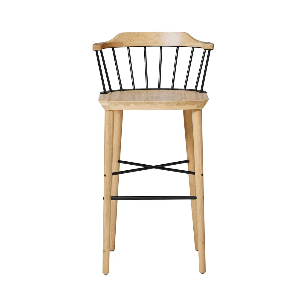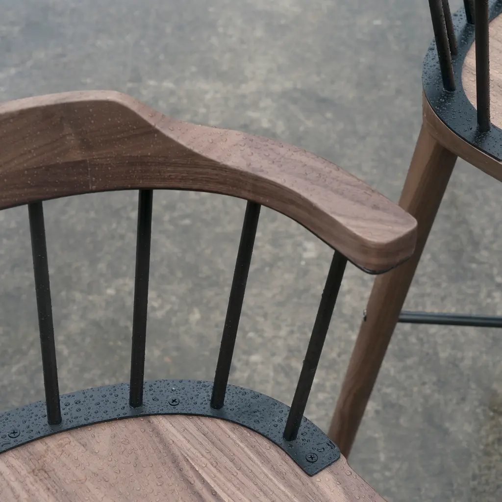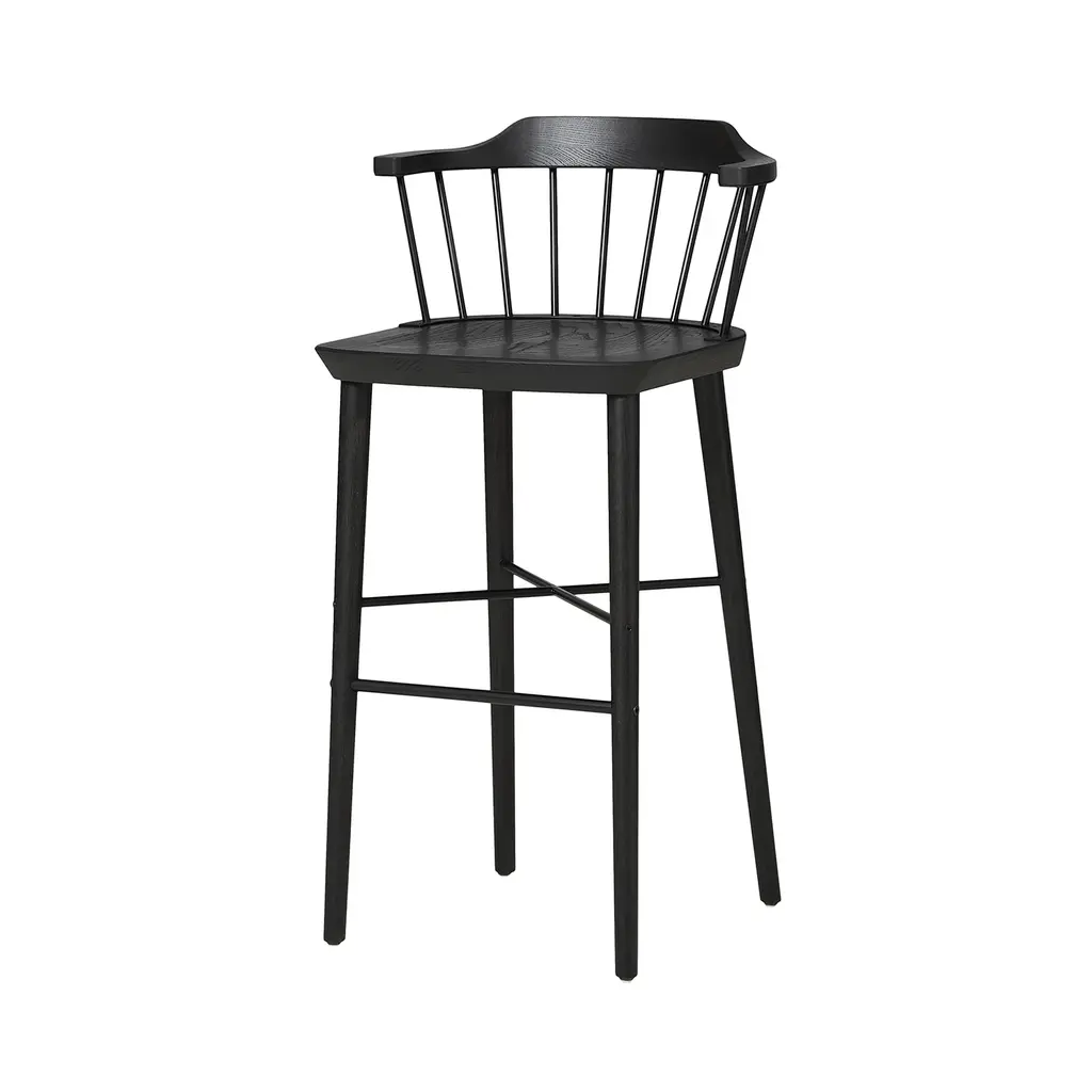 Riffing on traditional captain's chairs, Brooklyn designer Jun Aizaki of Brooklyn's Crème adapts his Exchange seating as a high stool, available in both bar and counter models. He trades out the customary wooden spindles with edgy blackened steel for a handsome update that underscores the timeless quality of the original. Rendered in solid walnut and the steel, the entire Exchange range bespeaks the unstinting craftsmanship of international brand Stellar Works.