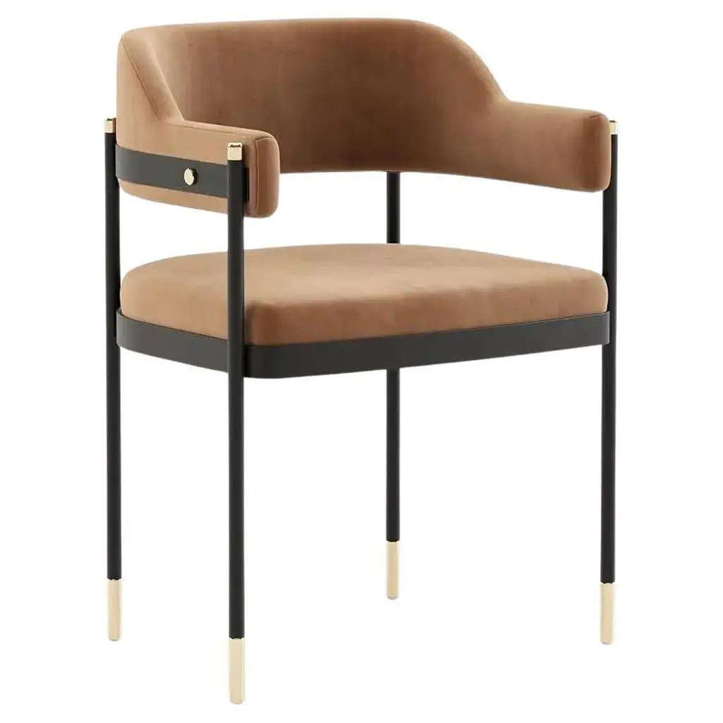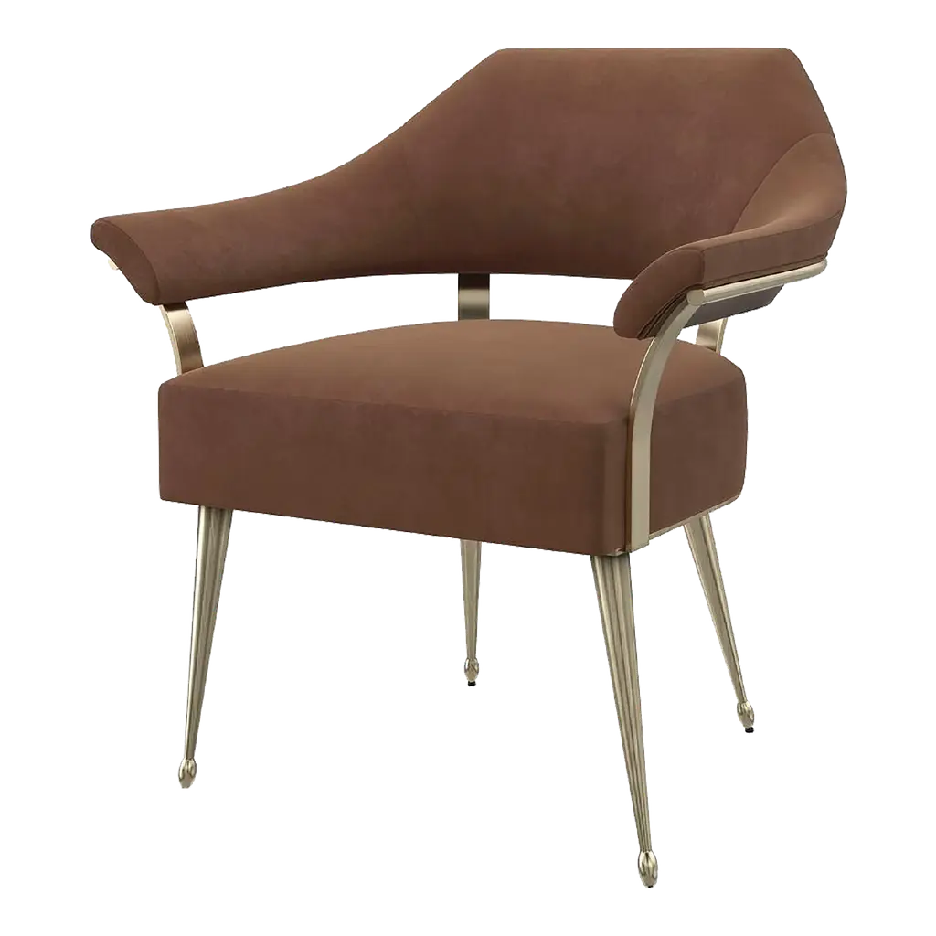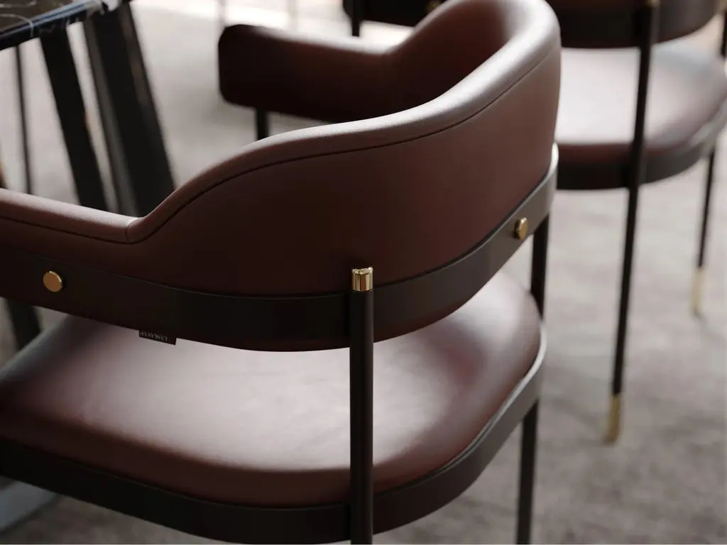 A dining chair that epitomizes contemporary elegance and superior craftsmanship. Designed to seamlessly blend with modern interiors, this chair features a sleek metal structure that provides a robust foundation while exuding a minimalist charm.Key Features:Metal Structure: The sturdy metal frame ensures durability and stability, making it a lasting addition to your dining room or office.Open Back Design: The open back not only enhances the aesthetic appeal but also offers ergonomic support, promoting comfort during extended seating.Premium Upholstery: Wrapped in high-quality fabric or leather (customizable to your preference), the seat and backrest provide a luxurious feel and sophisticated look.Versatile Use: Ideal for dining rooms, offices, or any contemporary space that demands a touch of refinement.Design Details:Dimensions: 26.0 x 19.3 x 30.7 in SH: 18.9 inFinish Options: Available in a variety of finishes to match your interior décor, from sleek metallic to matte tones.Color Variants: Choose from a range of upholstery colors to complement your existing furniture and color scheme.Contact us to enquire about COM/COL production, requirements and material shipping instructions.Please contact us if you have any questions about customization and pricing. We will be glad to check with the factory’s technical team if sizes, finishes, and colors can be customized.We do our best to expedite production and to ship and deliver product within the listed lead time, however current lead times might be longer due to global shipping backlog and delays. These delays are out of our control and cannot be a reason to cancel an order.