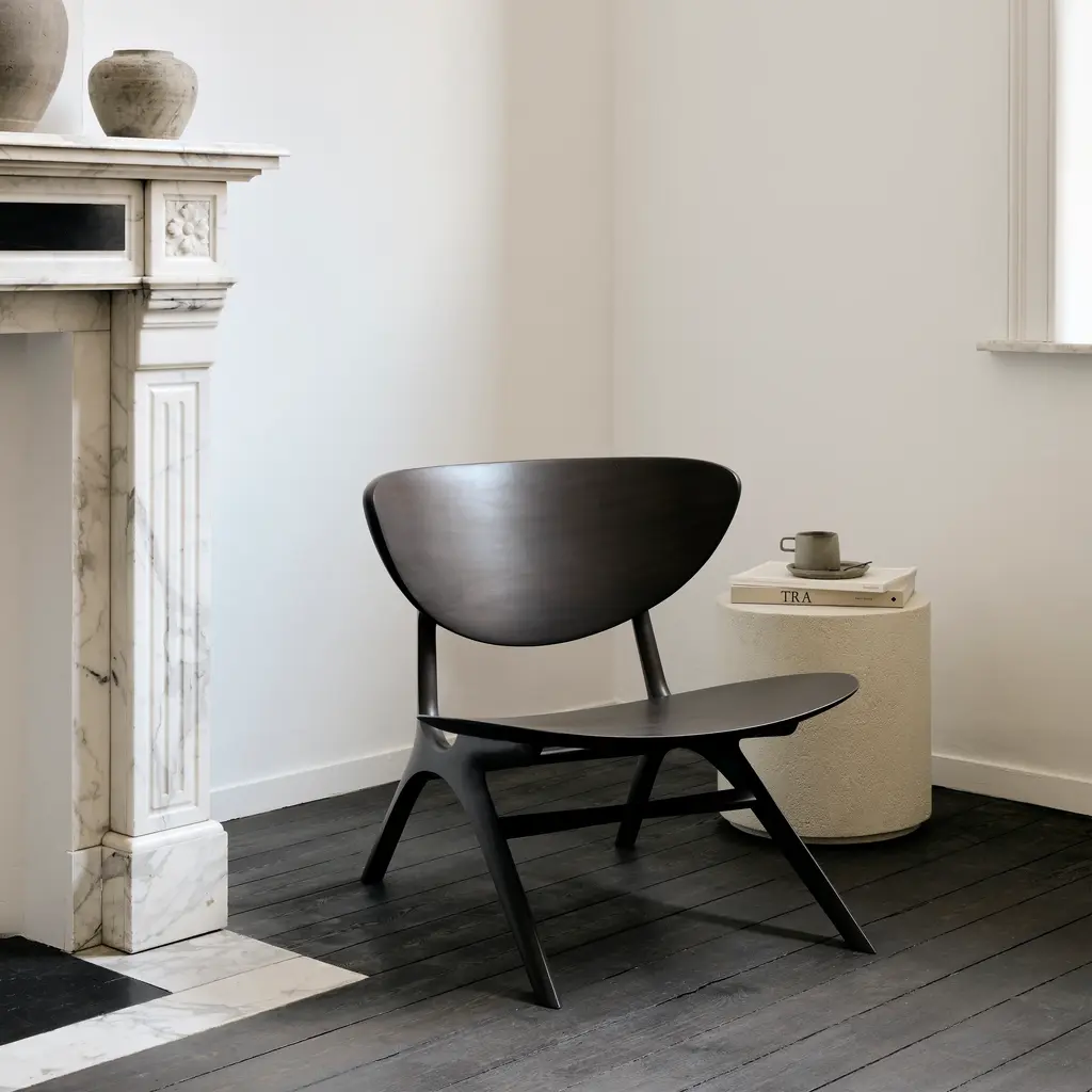 The Eye Lounge Chair is a striking fusion of modern design and timeless elegance, crafted out of solid European oak with a durable varnish finish. Measuring 29.5" W x 30.5" D x 29" H with sleek, angular front legs and smooth, flowing connections, this piece exemplifies solid wooden craftsmanship. The curved backrest, evocative of a winked eye, gives the chair its name and an unmistakable charm. The 31lb Eye Lounge Chair is designed to seamlessly blend into any space, offering a perfect balance of subtle elegance and sophisticated appeal. With its timeless design, this chair provides lasting comfort while adding a unique touch to your living room, lounge, or office.