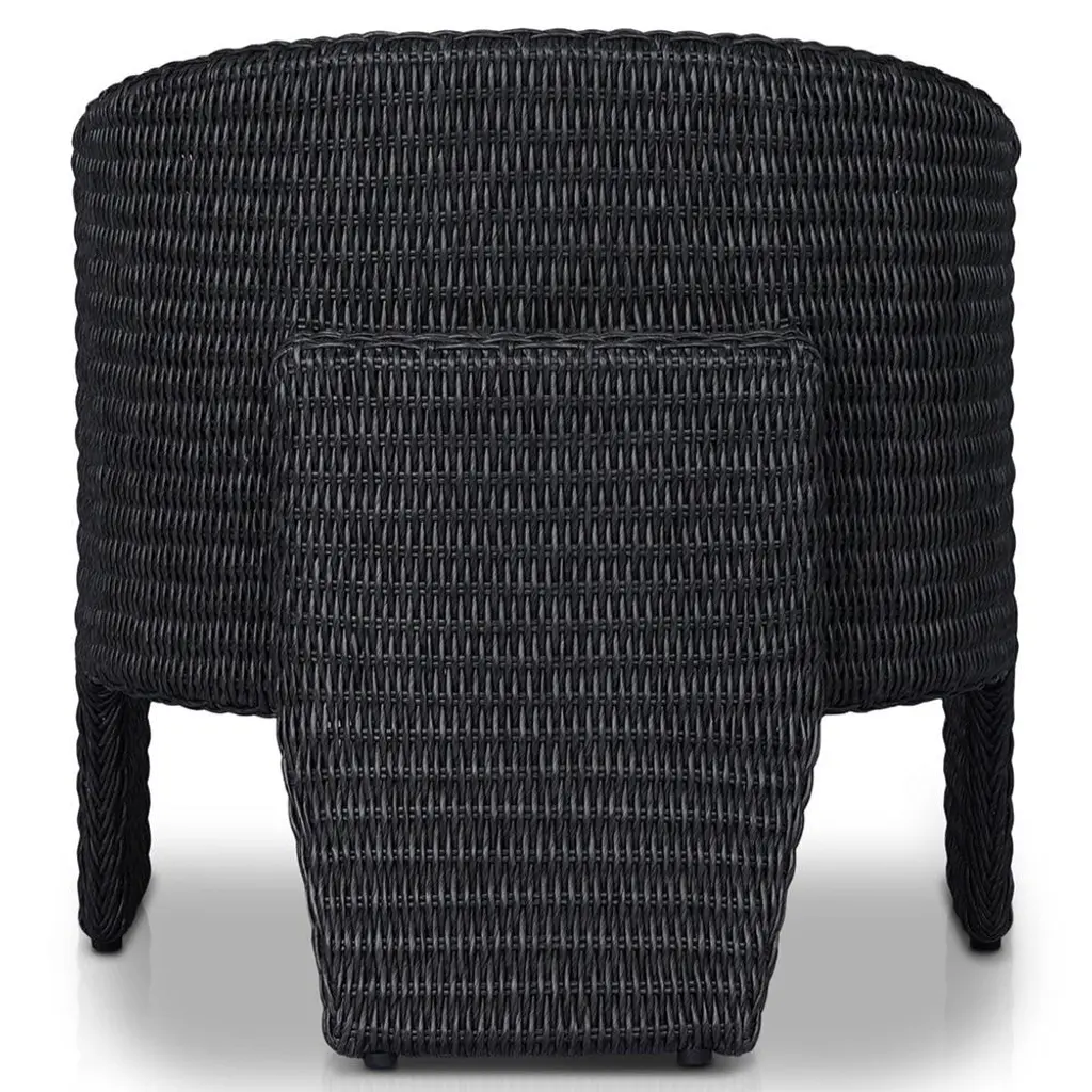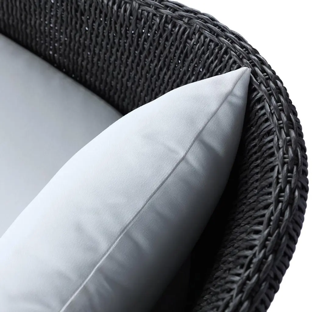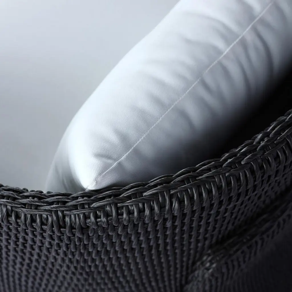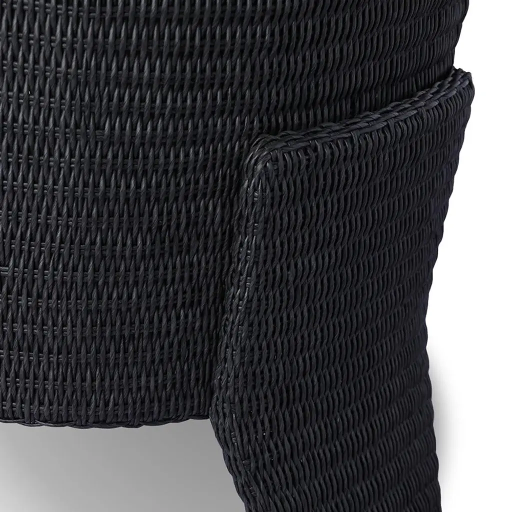 Fara Coastal Beach White Upholstered Black Woven Wicker Outdoor Lounge Arm Chair