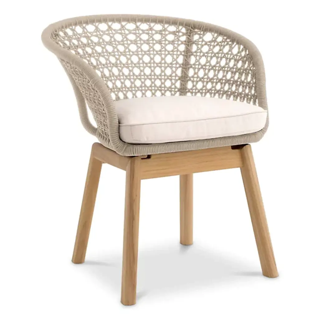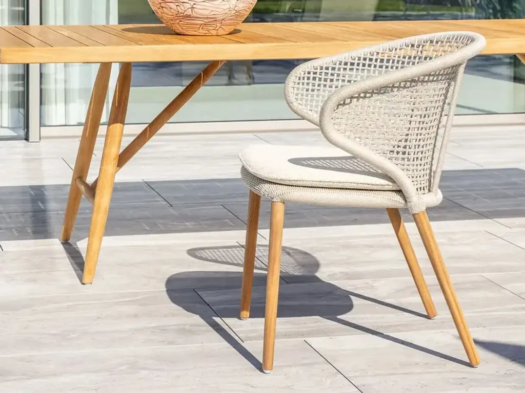 FARO is a rope garden chair with armrests, which impresses with its elegant handcrafted wicker. This chair is not just a piece of furniture, but a real eye-catcher in any outdoor area, combining the highest quality and stylish design.The masterful craftsmanship that goes into making this armchair is evident in every single wicker. Every line, every curve and every detail demonstrate the highest level of precision and care. The result is an armchair that is not only comfortable, but also a work of art in its own right. With its timeless and high-quality design, FARO blends perfectly into any outdoor area and gives it an unmatched elegance.Whether on your terrace, in your garden or by the pool, this chair will become the focal point where style and comfort meet.