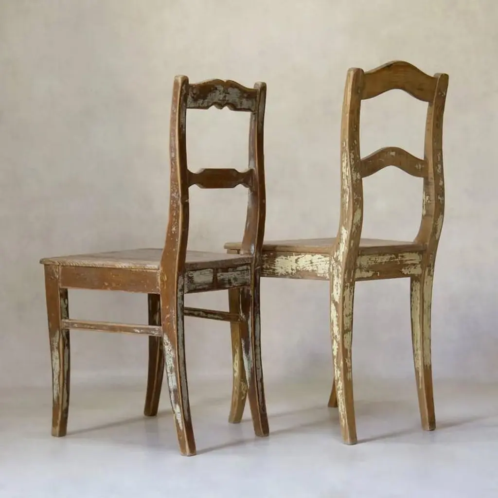 Faux-Pair Of Rustic Pine Chairs, France, 19th Century