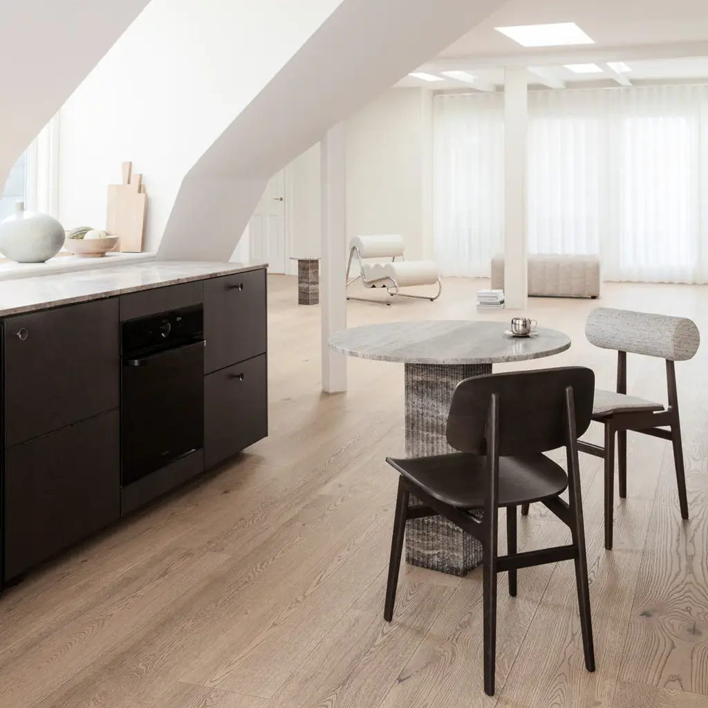 The name 'Fave' is a nod to the 80s, serving as a link to the chair's design inspiration but reinterpreted in a contemporary way. Three slats form the seat, merged into one cushion for enhanced comfort, while the back features a cylinder-shaped cushion. The design of the Fave Chair encourages relaxed and informal sitting positions, inviting users to lounge more freely. Although designed for contemporary lounging, it fits seamlessly into multiple environments.